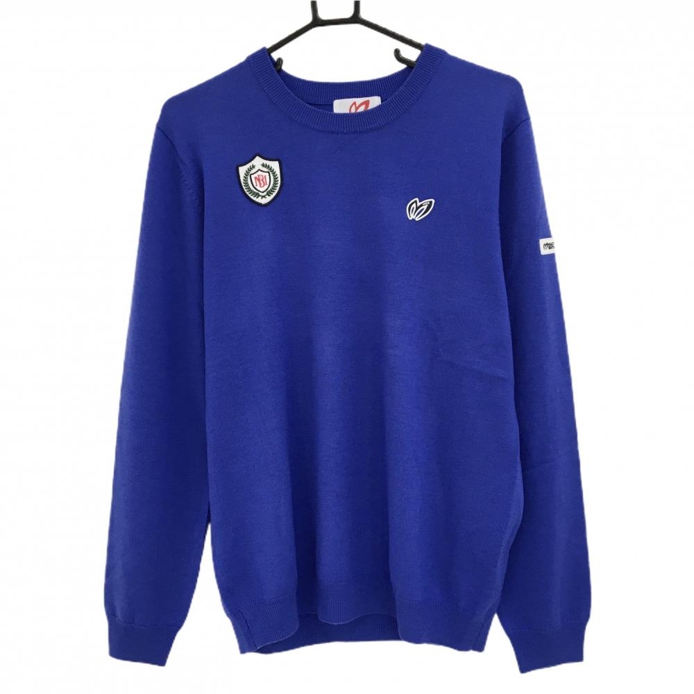 キスオンザグリーン セーター ブルー×イエロー パイル地ロゴ ウール混 ニット レディース 3(L) ゴルフウェア kiss on the green