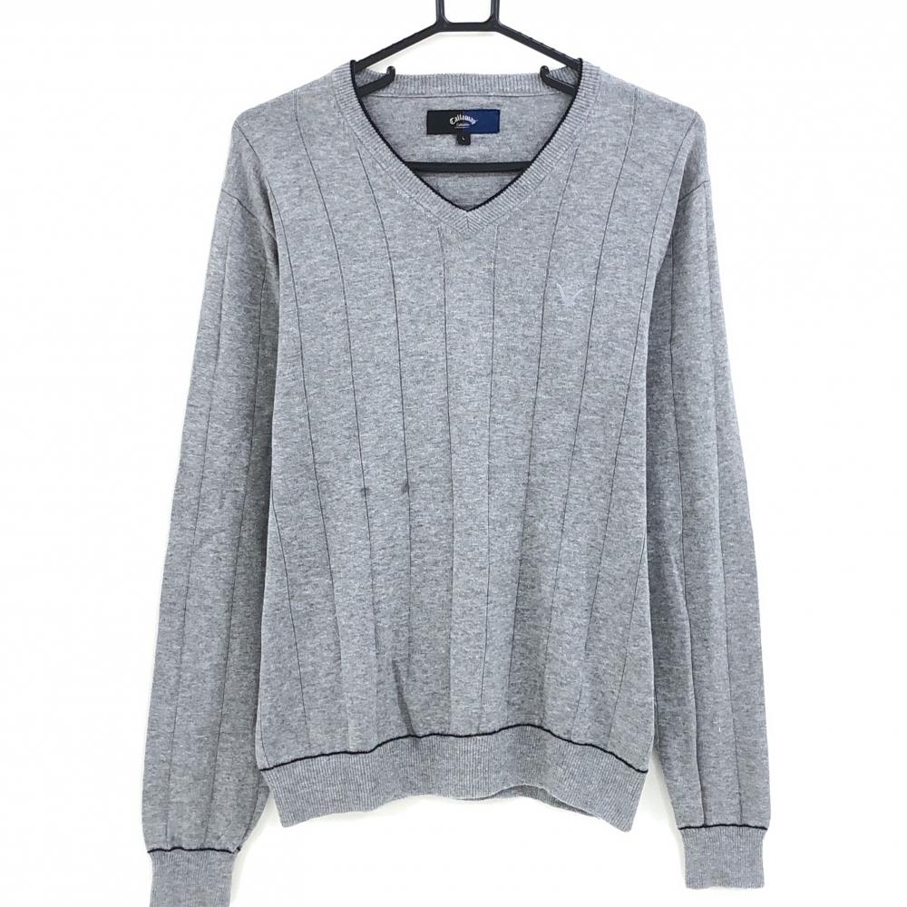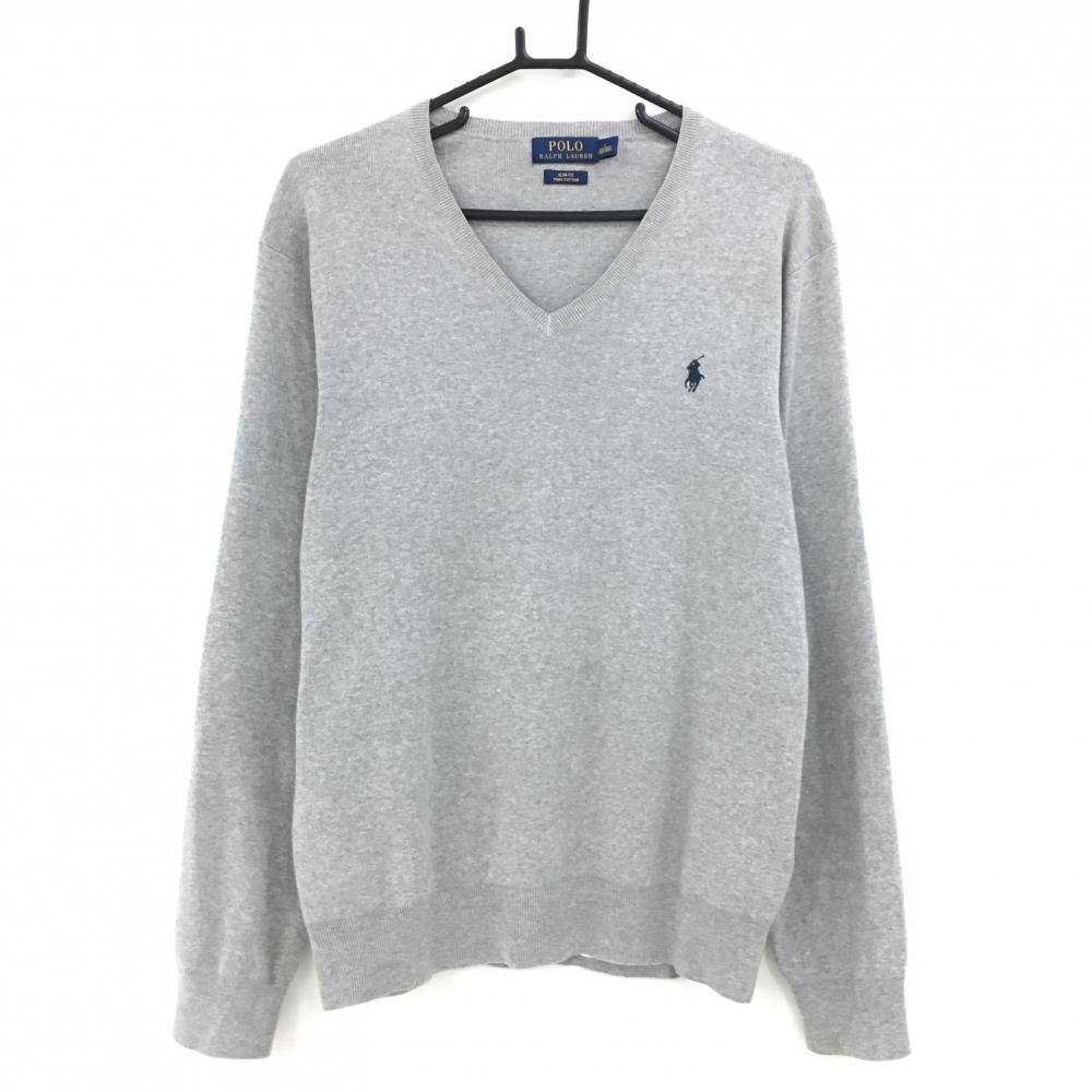 【美品】パーリーゲイツ セーター グレー Vネック 薄手 ニット メンズ 6(XL) ゴルフウェア PEARLY GATES