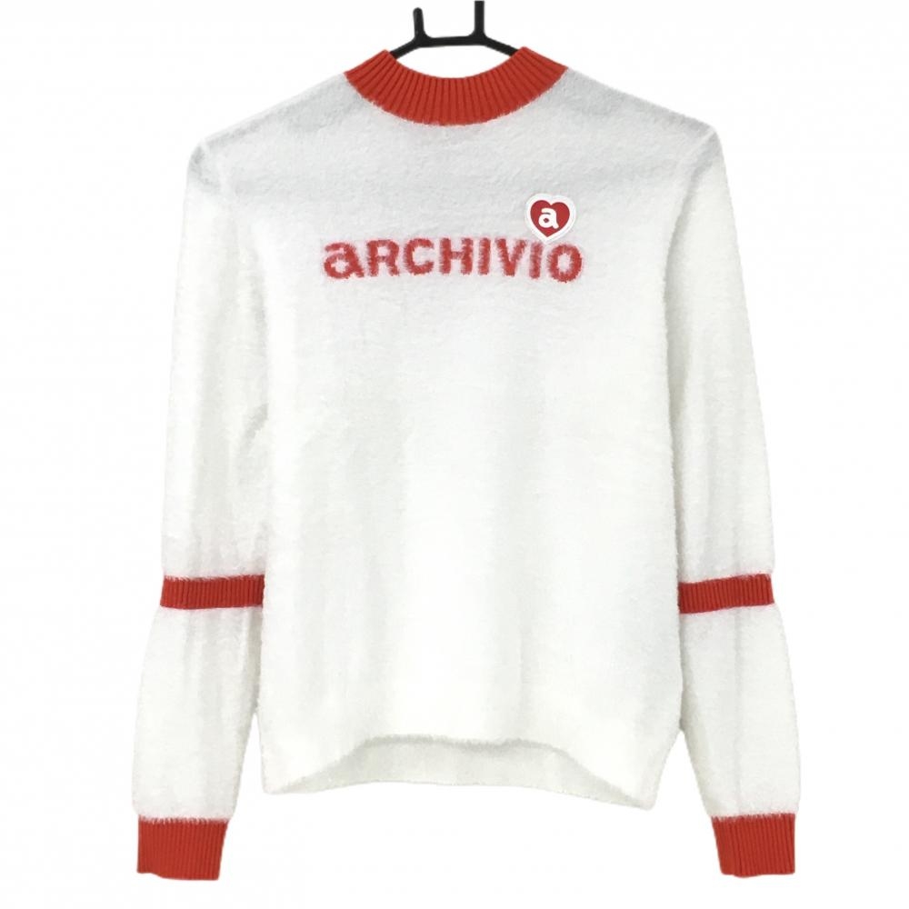 【美品】アルチビオ タートルネックセーター 白×黒 ボーダー てんとう虫柄 ウール100% レディース 36(S) ゴルフウェア archivio