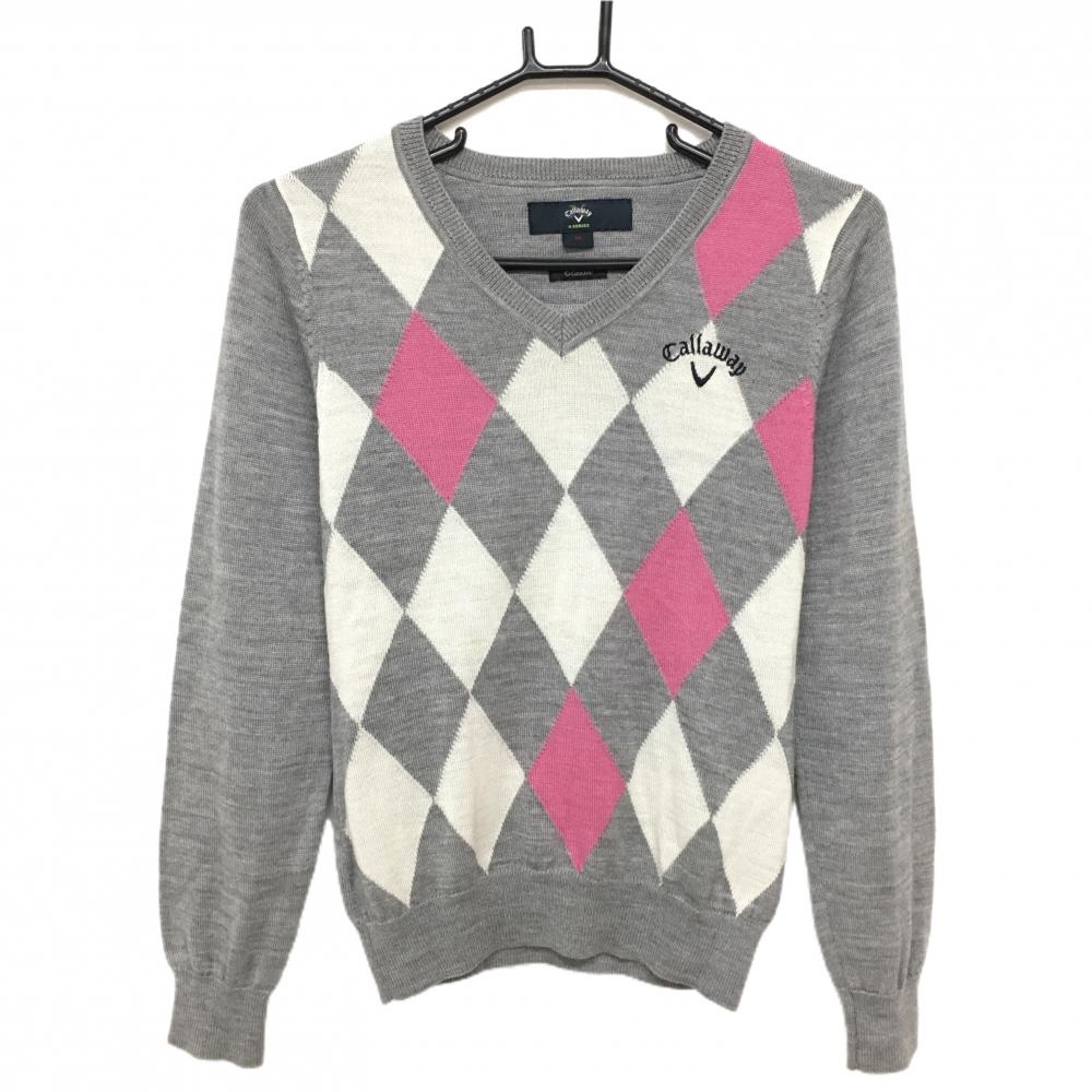 キャロウェイ ハイネックセーター グレー×ネイビー ノルディック柄 ロゴ刺しゅう ニット ウール混 レディース S ゴルフウェア Callaway