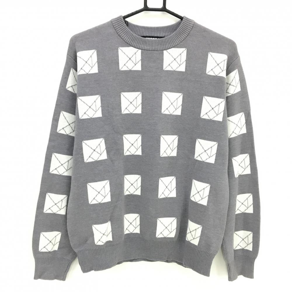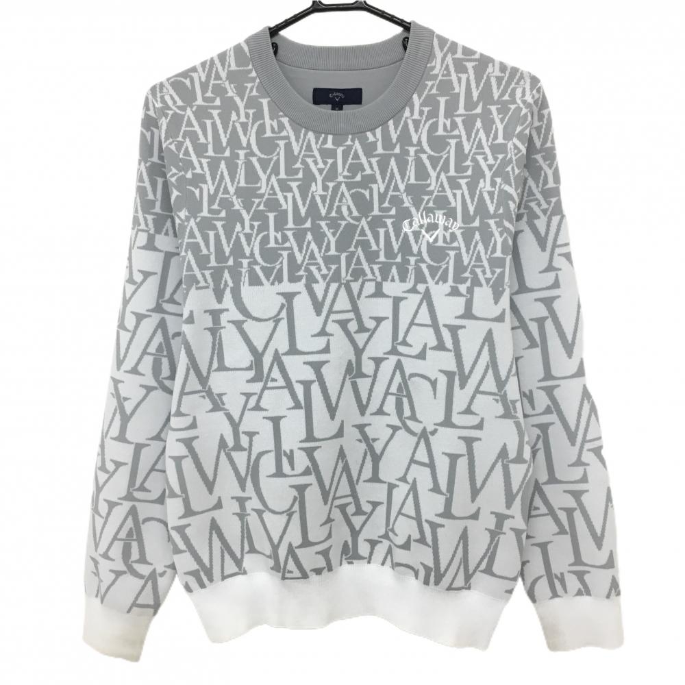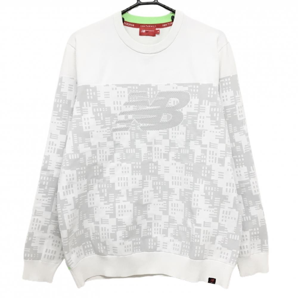 【美品】ニューバランスゴルフ セーター 白×グレー ロゴ総柄 メンズ 5(L) ゴルフウェア 2025年モデル New Balance