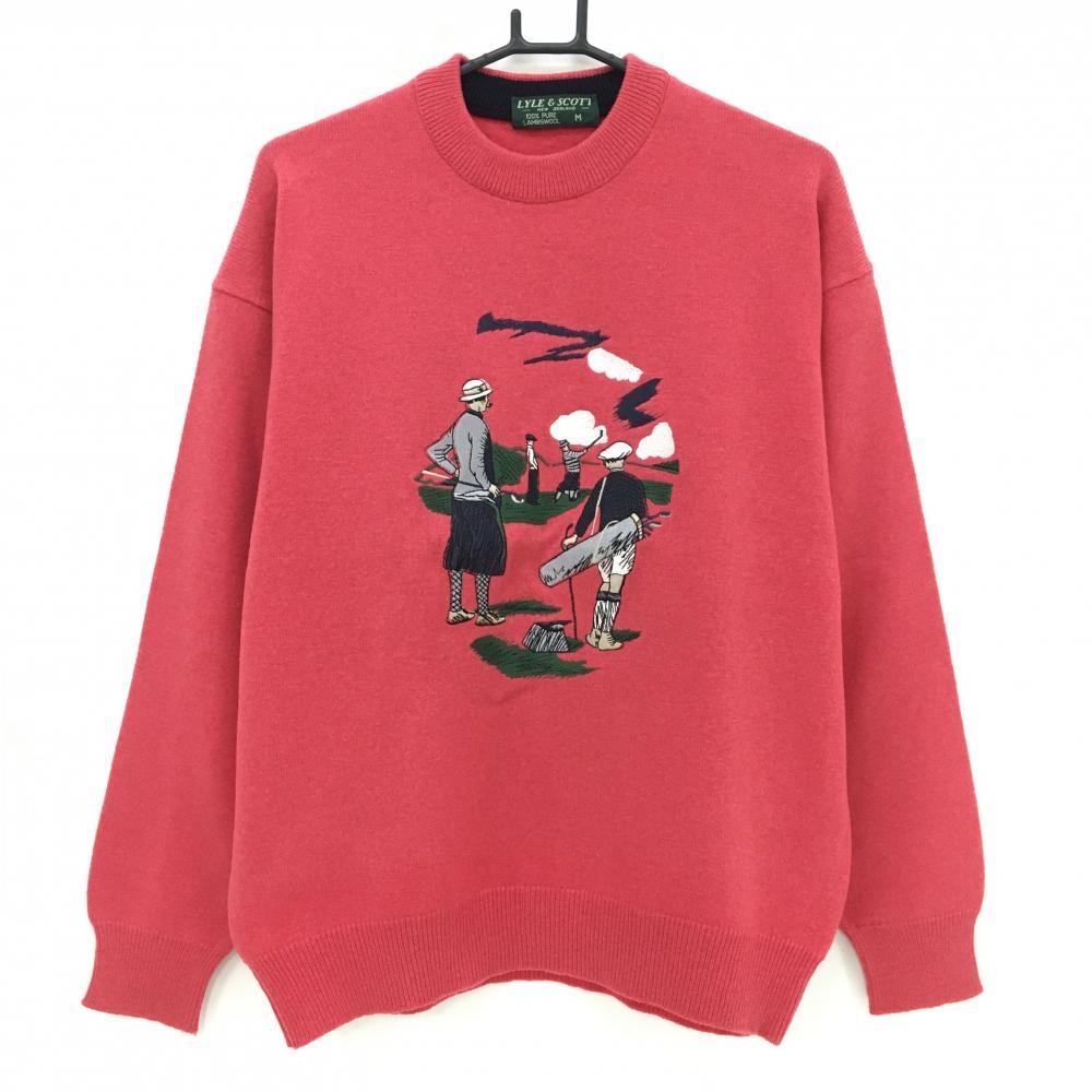 【超美品】マンシングウェア セーター レッド系×イエロー系 後ろビッグロゴ ウール混 ニット レディース L ゴルフウェア Munsingwear