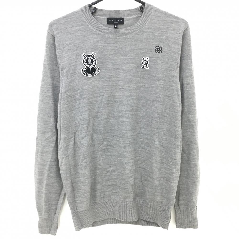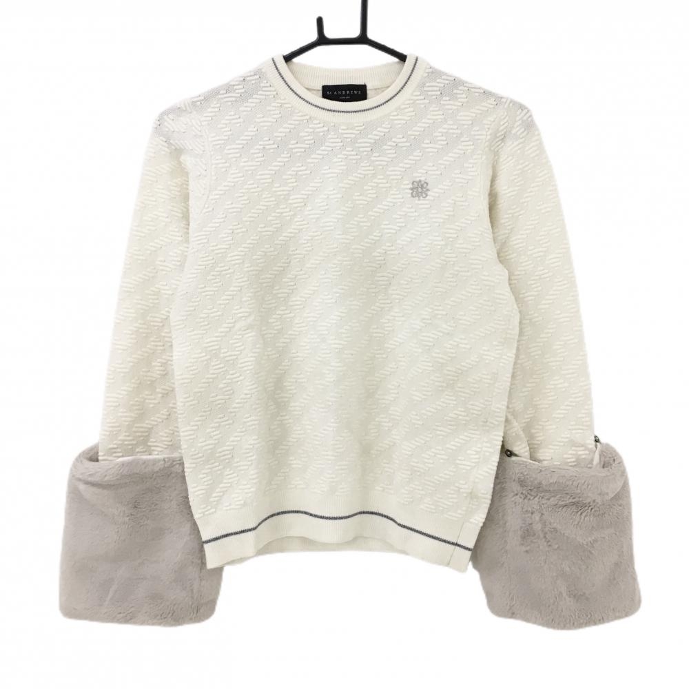 【新品】セントアンドリュース セーター 白×ライトグレー シルバーラメ 斜めロゴ総柄 ニット メンズ LL ゴルフウェア St ANDREWS