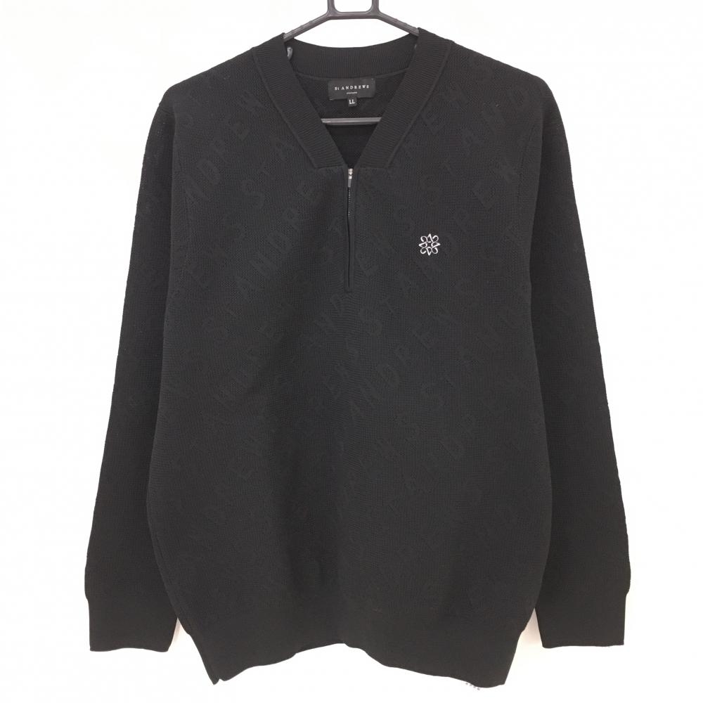 【超美品】セントアンドリュース セーター 黒 ラメ ロゴ刺しゅう ウール混 ニット メンズ LL ゴルフウェア St ANDREWS