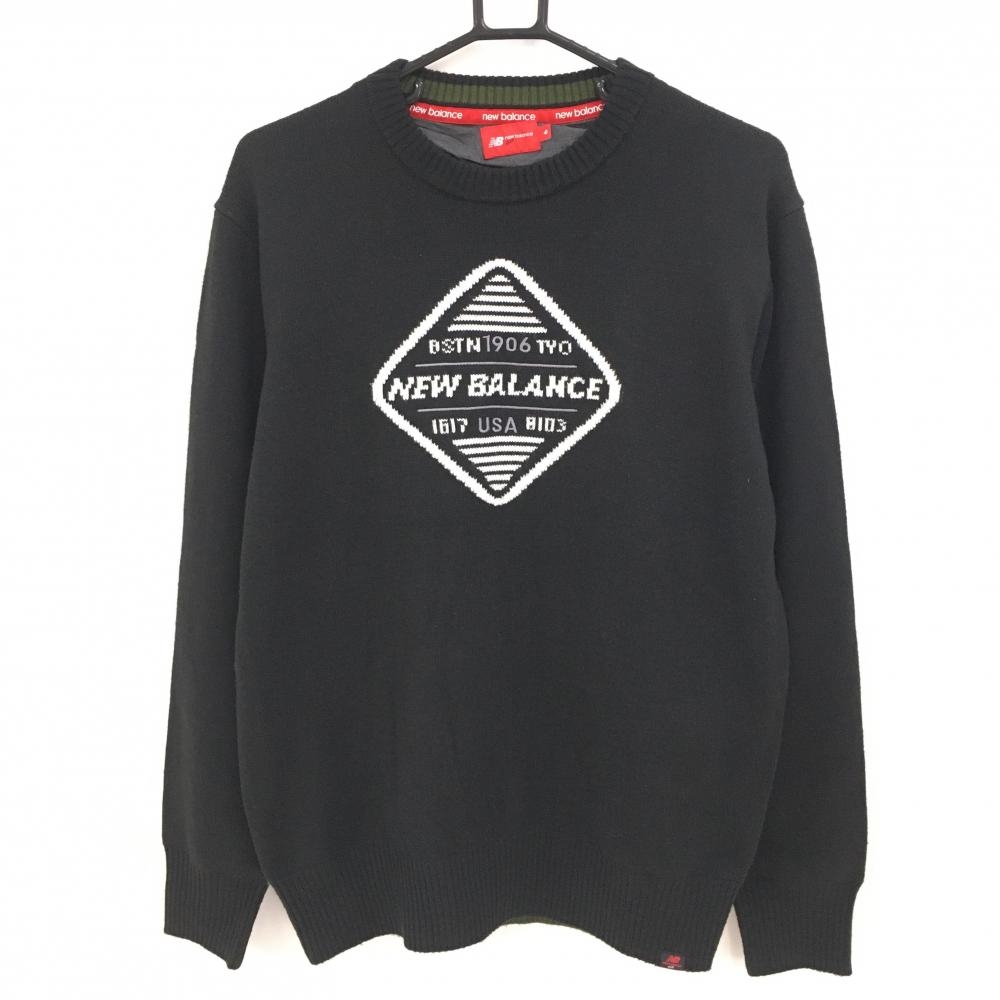 【美品】ニューバランスゴルフ セーター 黒×白 ロゴ総柄 ニット レディース 1(M) ゴルフウェア 2023年モデル New Balance