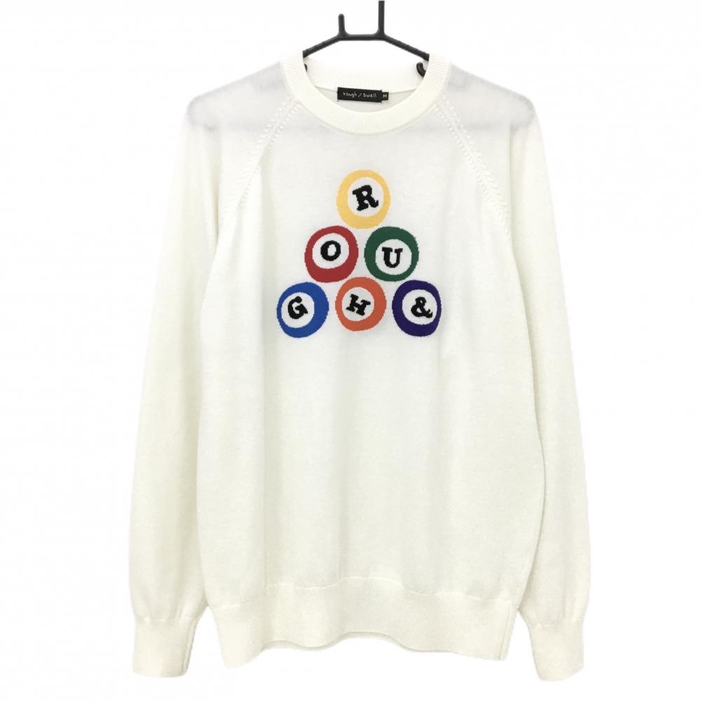 ケンゾーゴルフ セーター 白×マルチカラー 前面総柄 ウール100% メンズ 2 ゴルフウェア KENZO GOLF