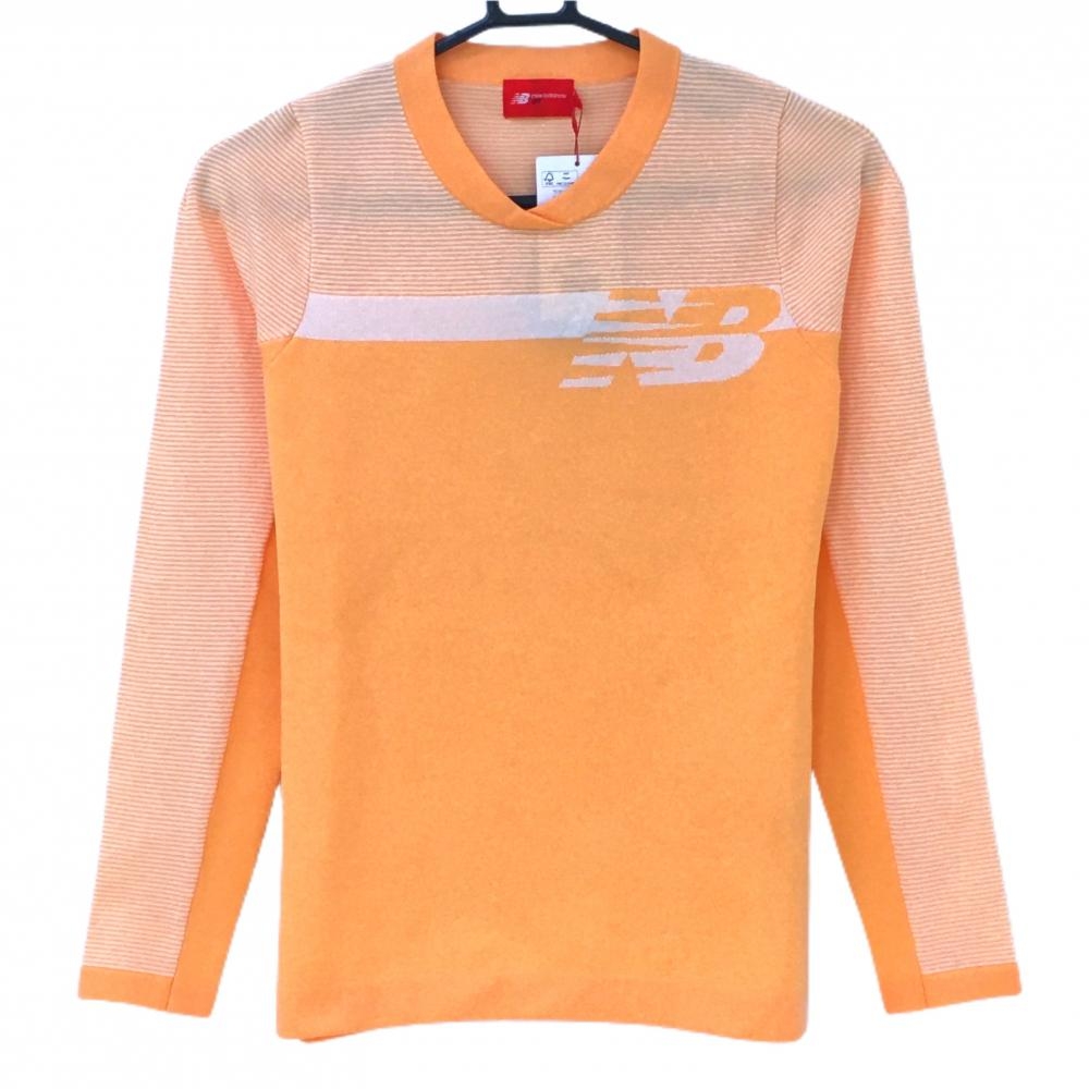 【超美品】ニューバランスゴルフ セーター 白×蛍光オレンジ×黒 フロントロゴ ウール混 ニット レディース 0(S) ゴルフウェア New Balance