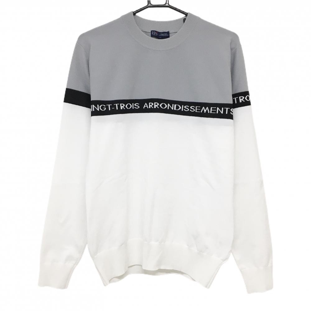 ブリーフィング セーター 白×黒 バイカラー 後ろロゴ ニット メンズ L ゴルフウェア BRIEFING