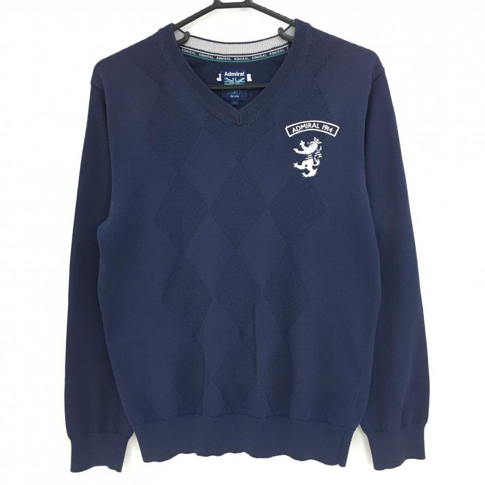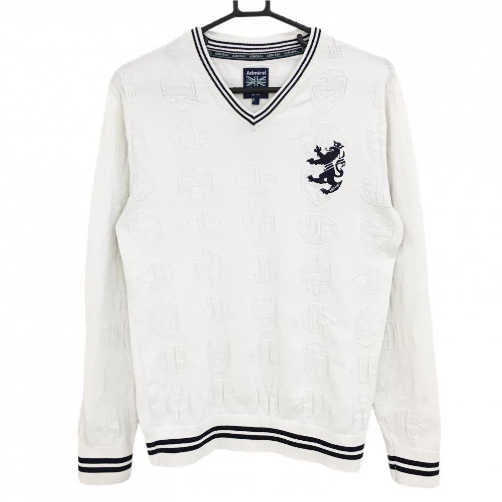 アドミラル セーター 白×ネイビー千鳥格子 Vネック ロゴ刺しゅう ニット レディース M ゴルフウェア Admiral