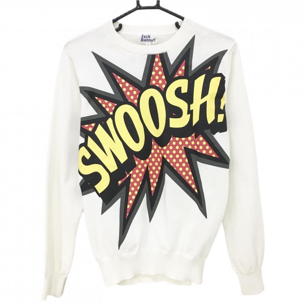ジャックバニー セーター 白×レッド 背面英字プリント ポリエステル100% ニット レディース 1(M) ゴルフウェア Jack Bunny