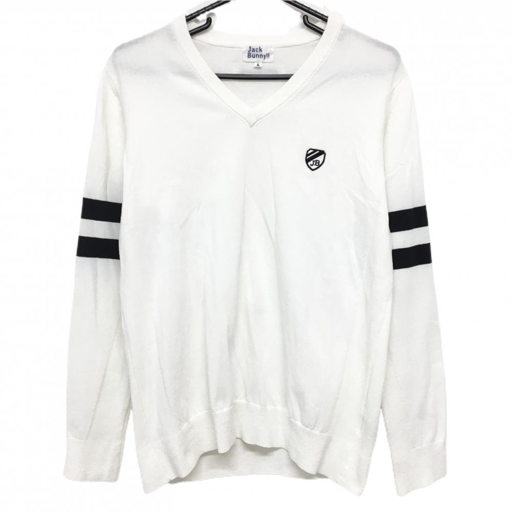 ジャックバニー セーター 白 織生地 袖2ライン ニット レディース 2(L) ゴルフウェア Jack Bunny