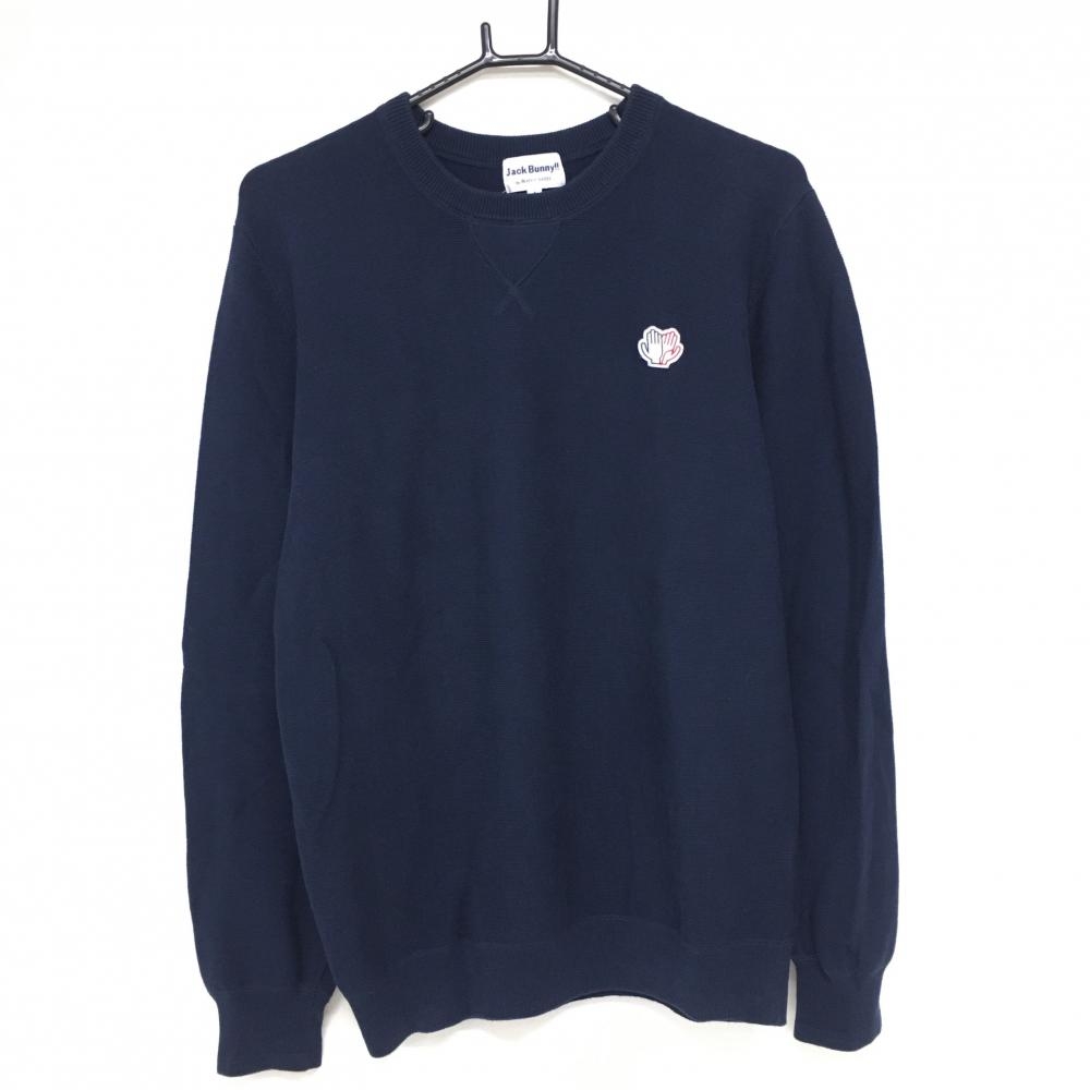 ジャックバニー セーター 白×ネイビー フロント英字 コットン混 ニット レディース 0(S) ゴルフウェア Jack Bunny