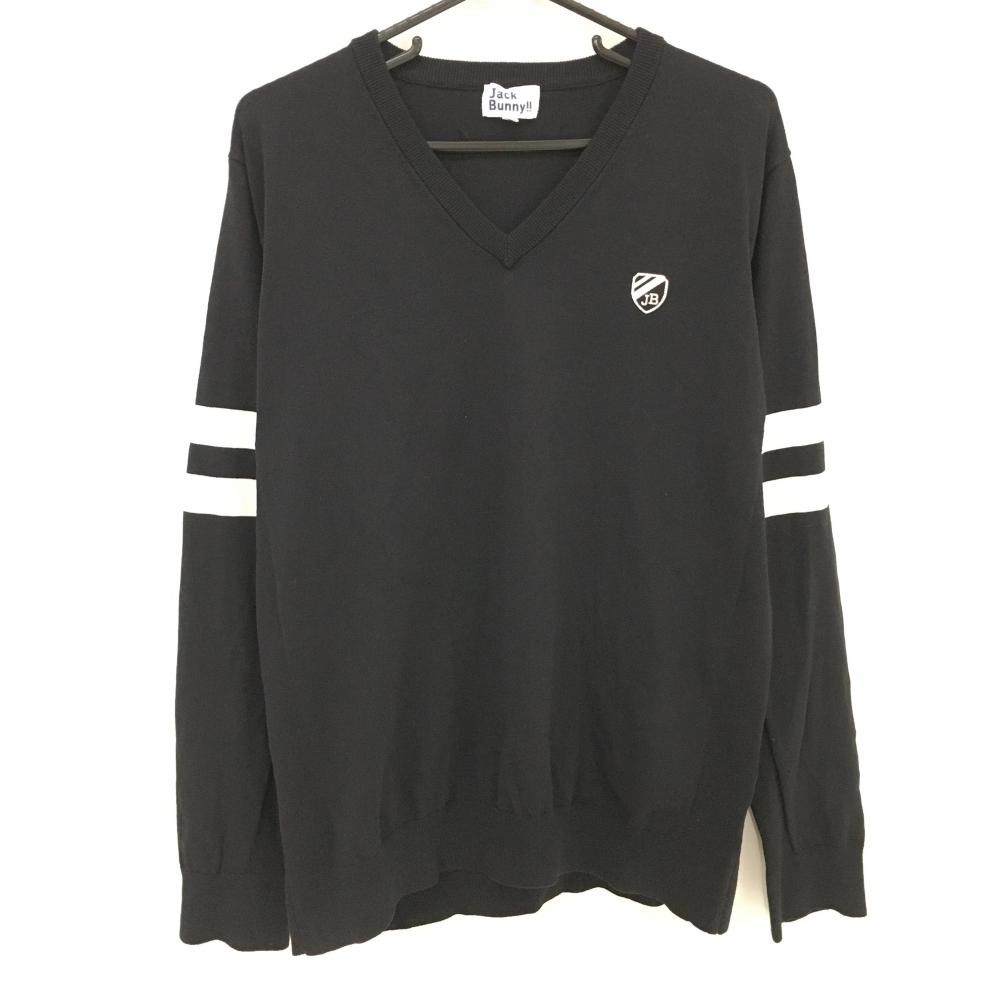 【超美品】ジャックバニー セーター 黒×白 総柄 蓄熱裏地 うさ耳 ニット メンズ 5(L) ゴルフウェア Jack Bunny