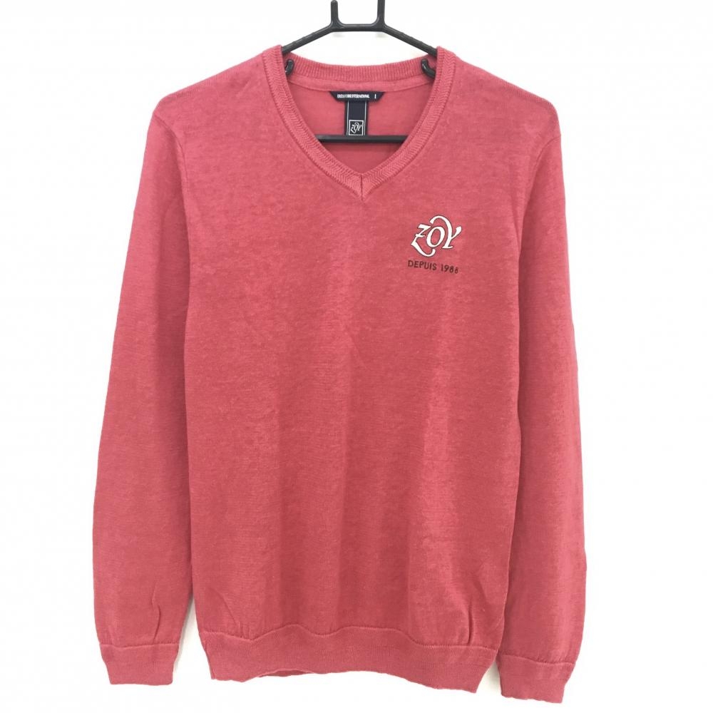 【美品】ゾーイ セーター ネイビー 胸ロゴ コットン混 ニット レディース 38(M) ゴルフウェア ZOY