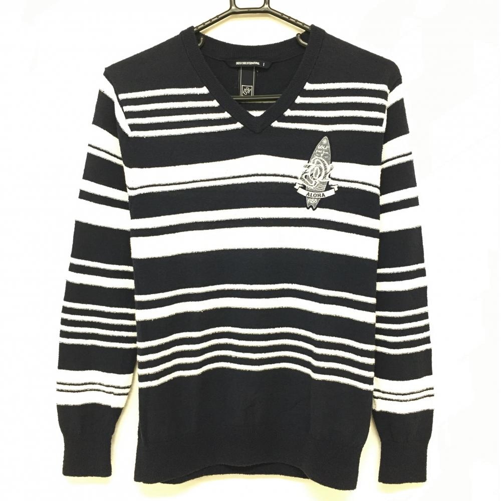 【超美品】パーリーゲイツ セーター 白×ネイビー ボーダー ニット メンズ 6(XL) ゴルフウェア PEARLY GATES