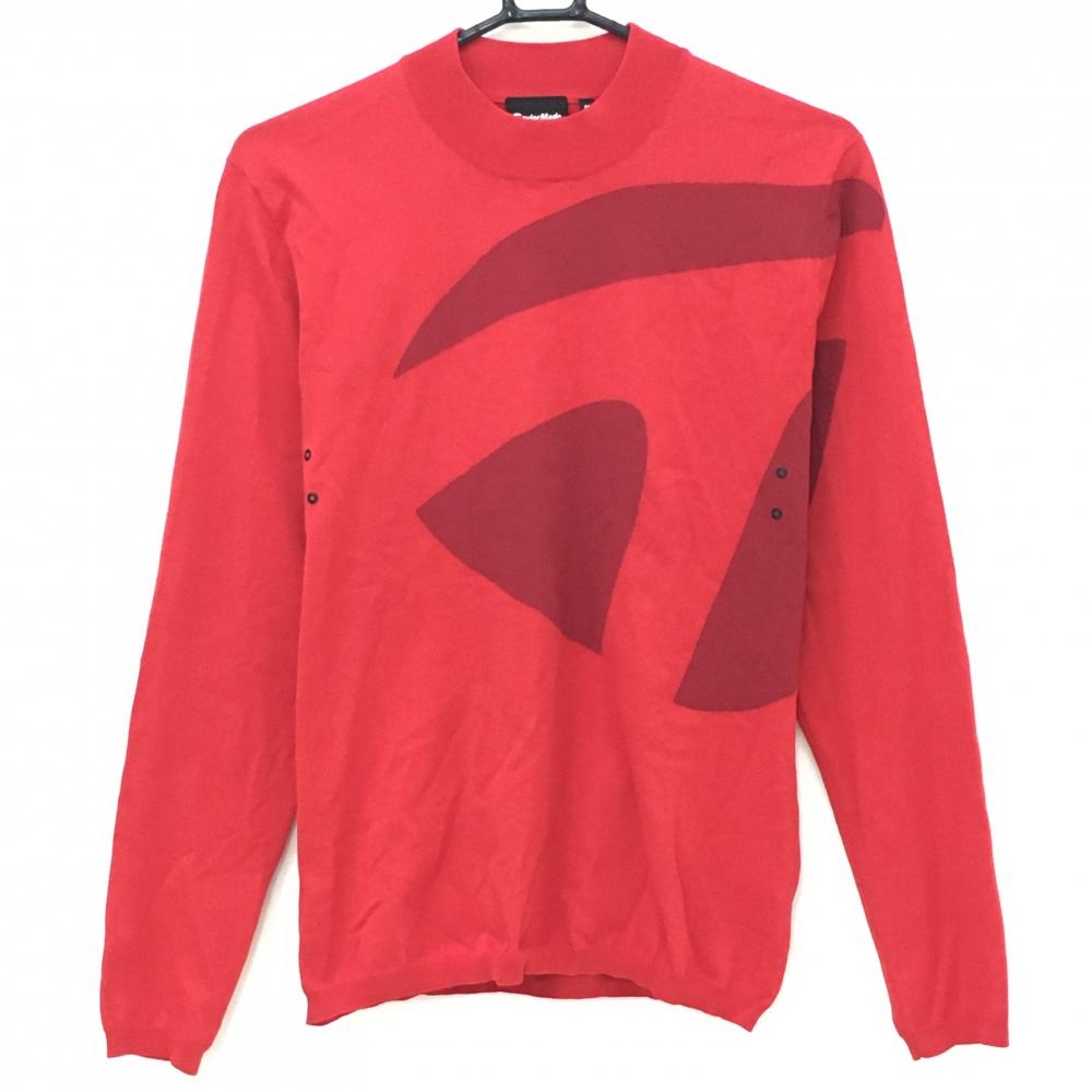 パーリーゲイツ タートルネックセーター レッド 袖ロゴワッペン ニット レディース 2(L) ゴルフウェア PEARLY GATES