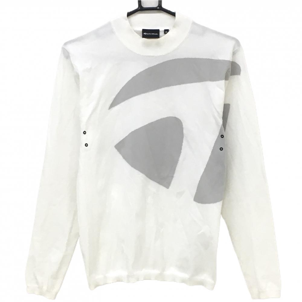 キャロウェイ ハイネックセーター 白 ランダムリブ編み ロゴシルバー ウール混 ニット レディース L ゴルフウェア Callaway