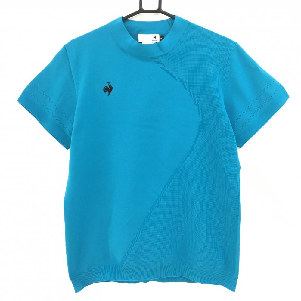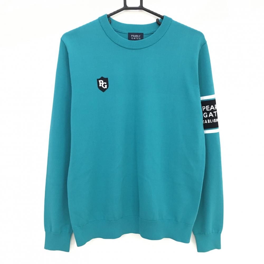 パーリーゲイツ ハイネックセーター ターコイズブルー×白 ネックロゴ ニット レディース 2(L) ゴルフウェア 2023年モデル PEARLY GATES