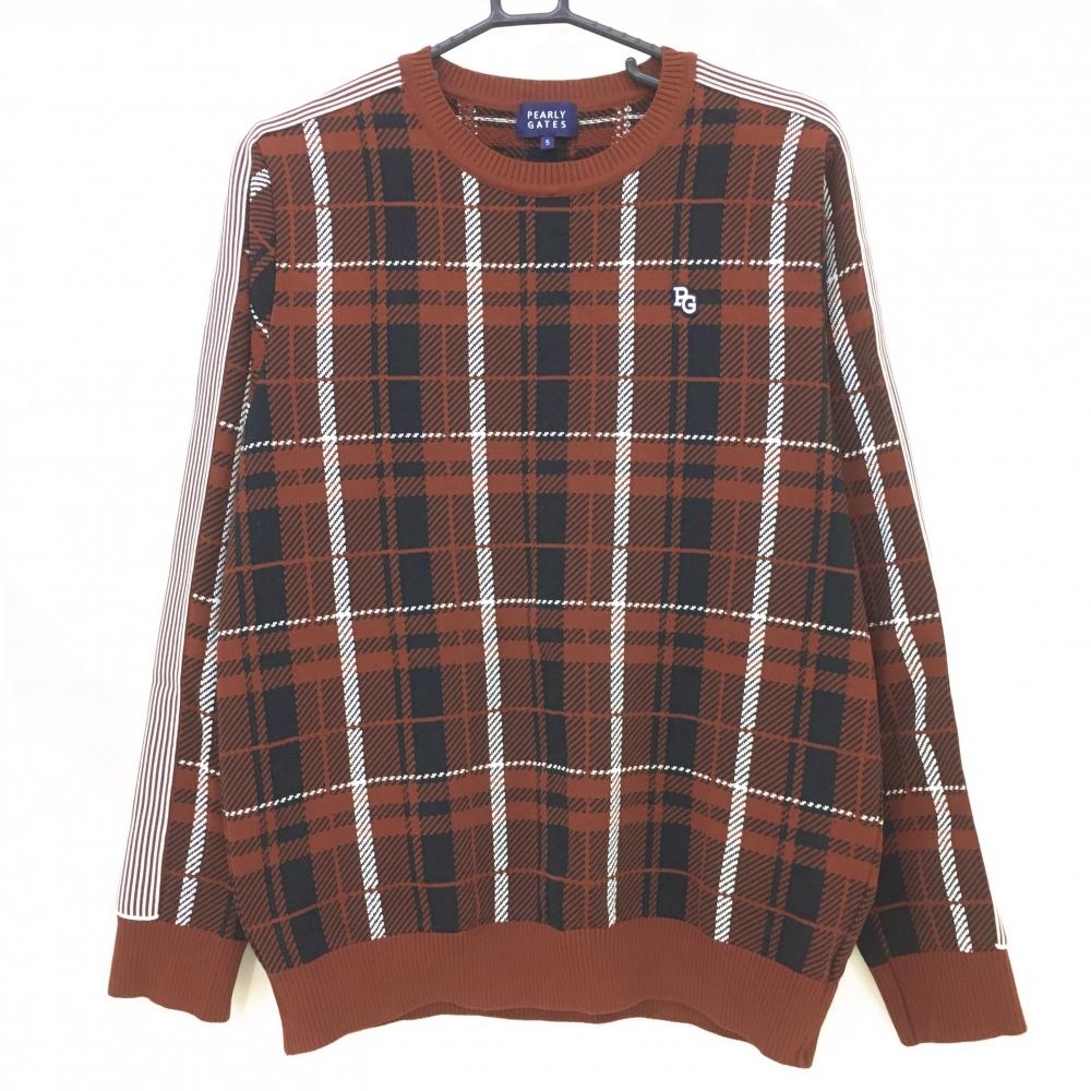 【美品】パーリーゲイツ セーター レッド×ネイビー チェック 襟・袖口着脱可 ウール100% レディース 1(M) ゴルフウェア PEARLY GATES
