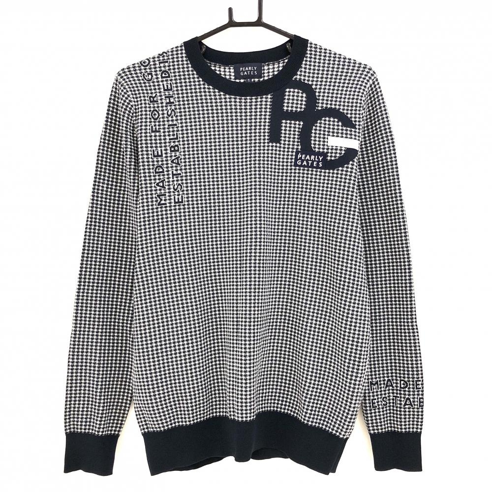 パーリーゲイツ セーター 黒×白 総柄 裏地付 ウール混 ニット メンズ 4(M) ゴルフウェア PEARLY GATES