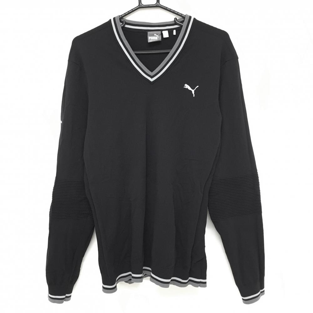 プーマ セーター 黒×ピンク 上部千鳥格子 Vネック ウール混 ニット レディース S ゴルフウェア PUMA