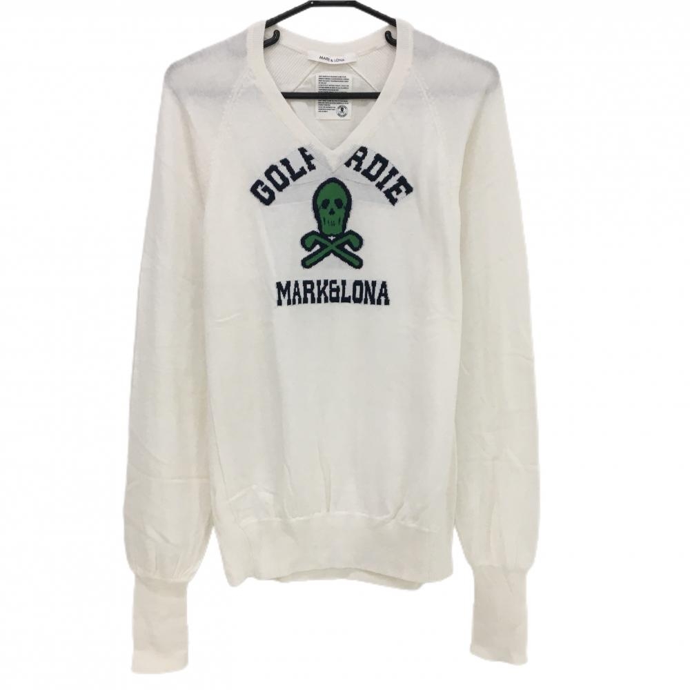 【美品】マークアンドロナ セーター ネイビー スカル 前身頃裏地付き ニット レディース 38(M) ゴルフウェア MARK&LONA