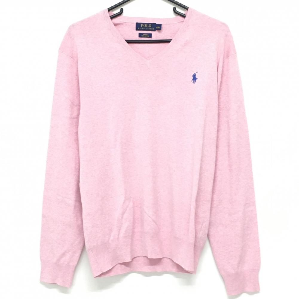【美品】パーリーゲイツ セーター ピンク×ネイビー 一部メッシュ ニット レディース 1(M) ゴルフウェア PEARLY GATES