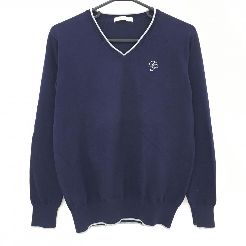 【美品】フィラゴルフ セーター グレー×ネイビー Vネック ワッペン ニット レディース LL ゴルフウェア FILA GOLF