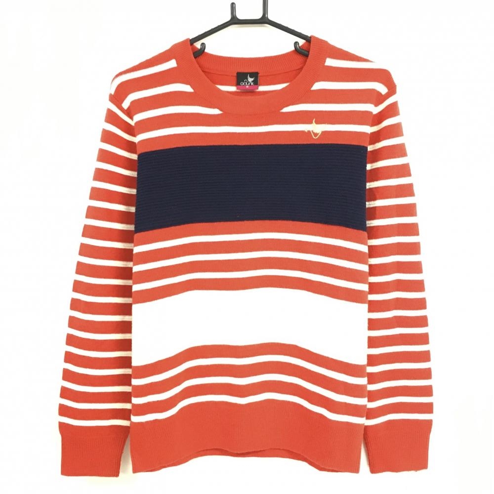 ビームスゴルフ セーター オレンジ×白 ゼブラ柄 ウール・カシミヤ混 レディース M ゴルフウェア BEAMS GOLF