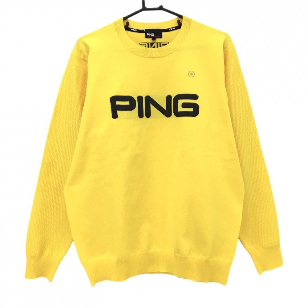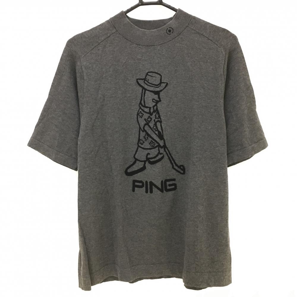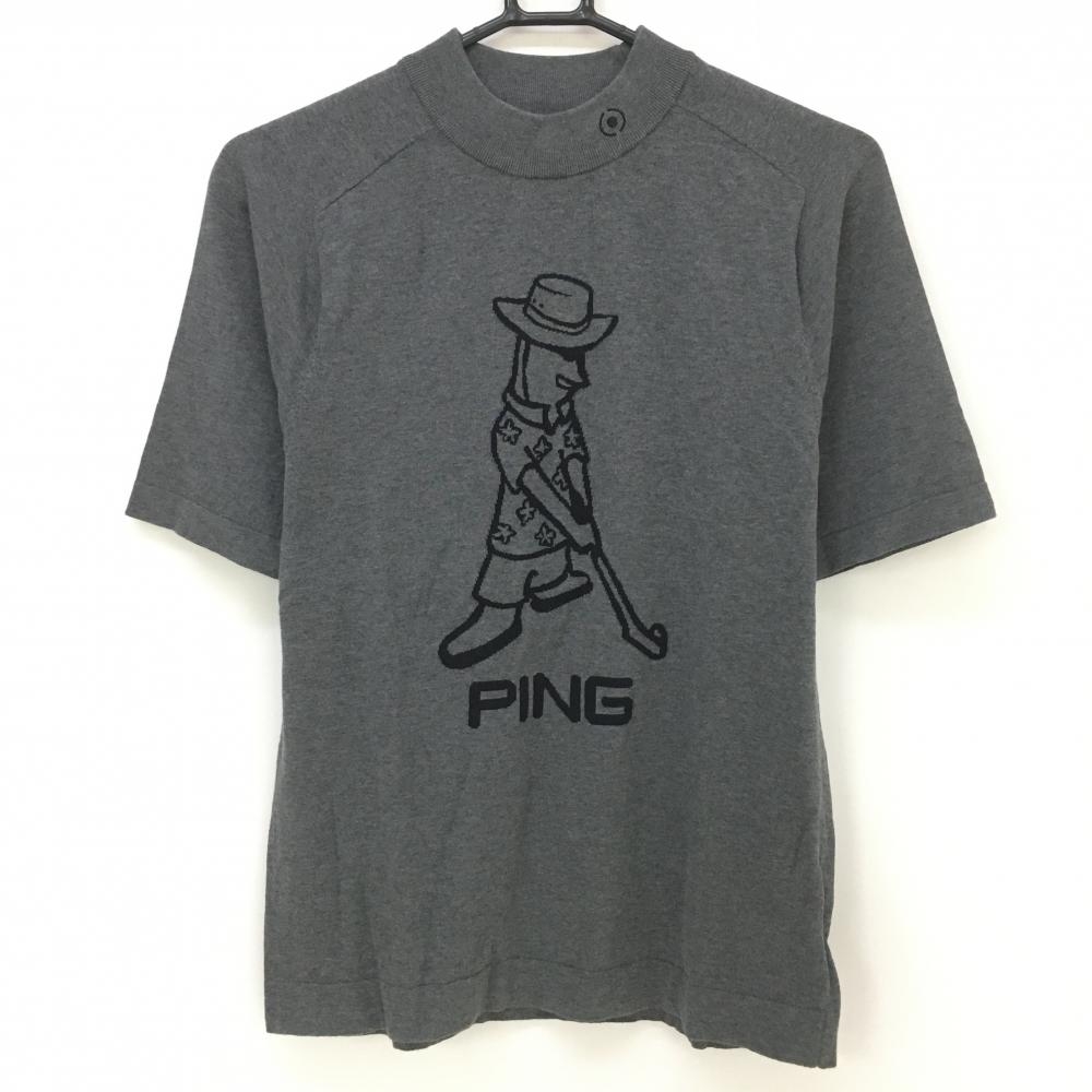 【超美品】ピン 半袖セーター グレー×黒 フロントロゴ コットン100% ニット メンズ L ゴルフウェア PING