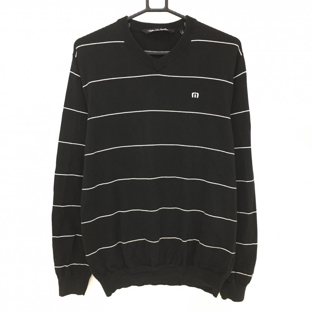 【超美品】ヤミーローズ 裏地付セーター 黒×ベージュ ウール混 ニット メンズ LL ゴルフウェア yummy rose