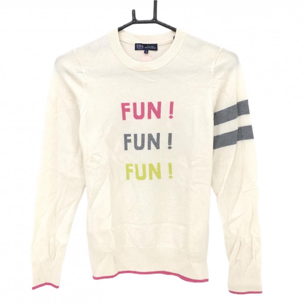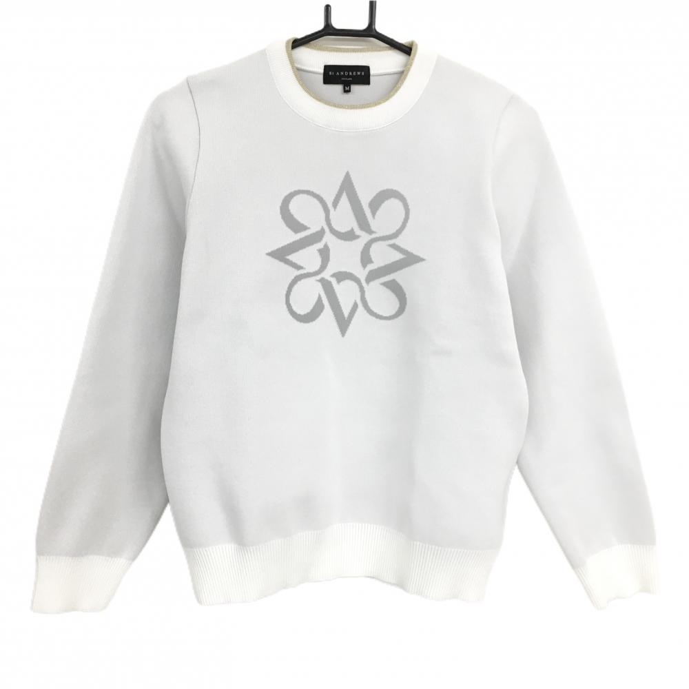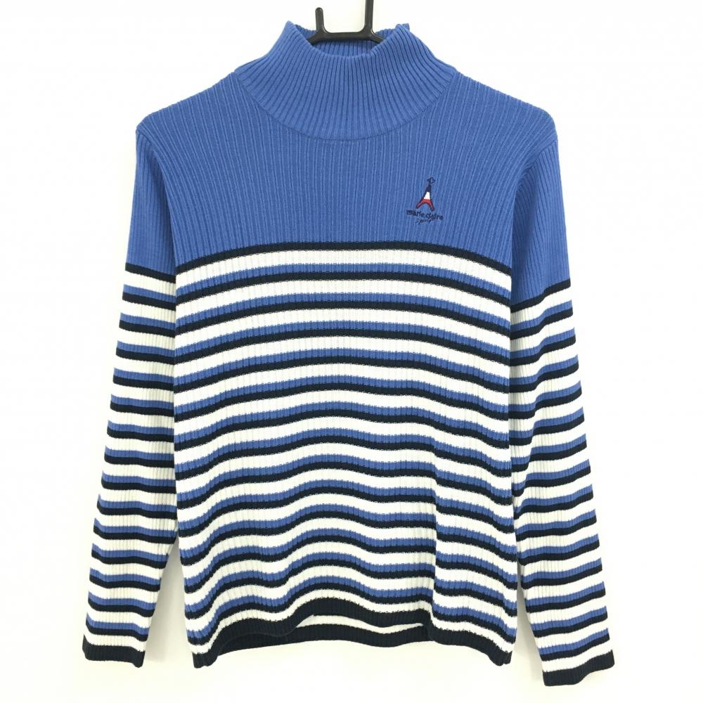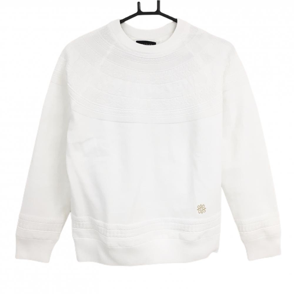 【美品】ジュンアンドロペ セーター 白×黒 ボーダー 胸元ワッペン ニット レディース M ゴルフウェア JUN&ROPE