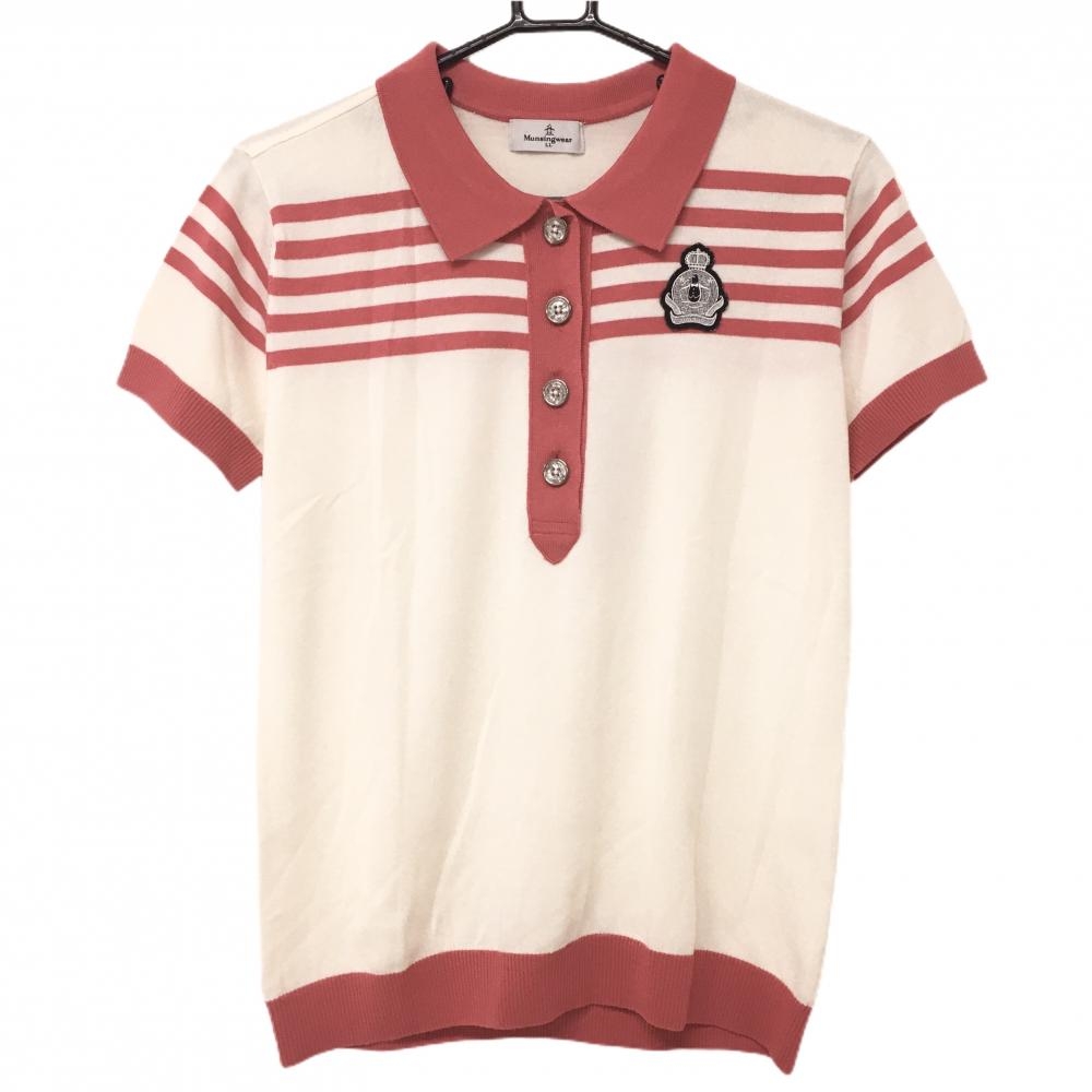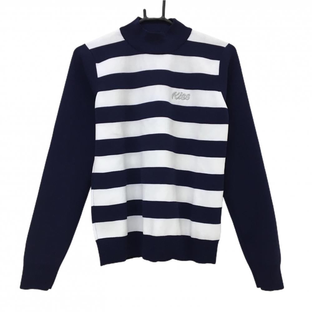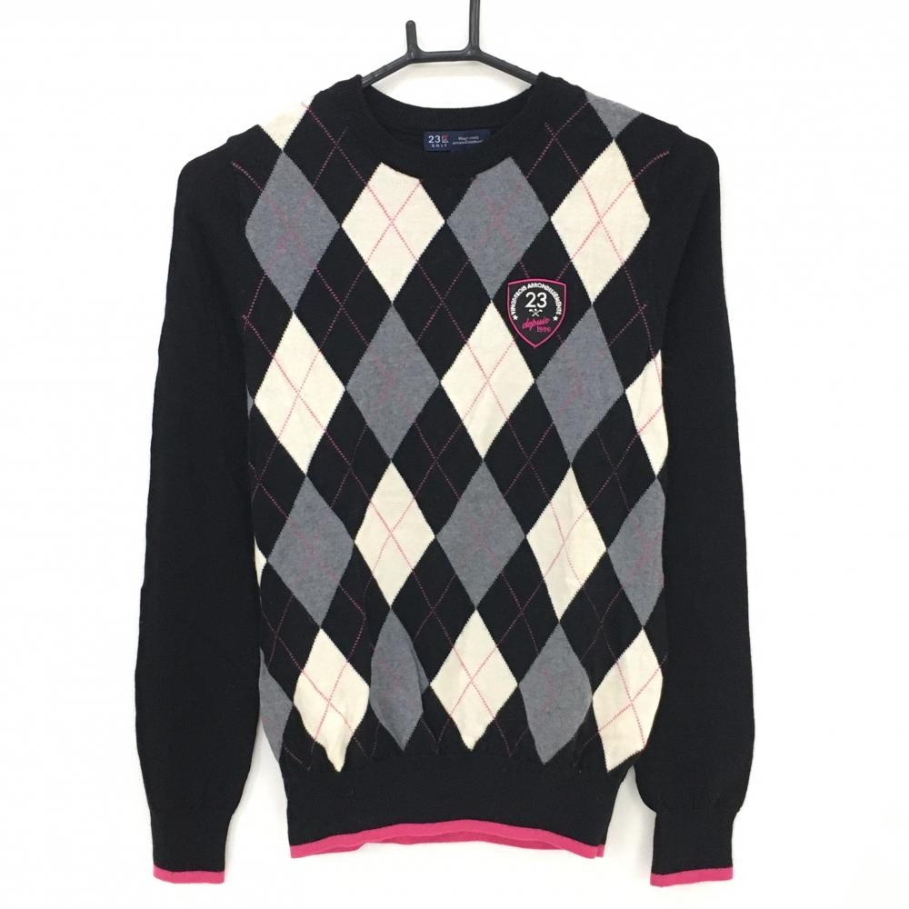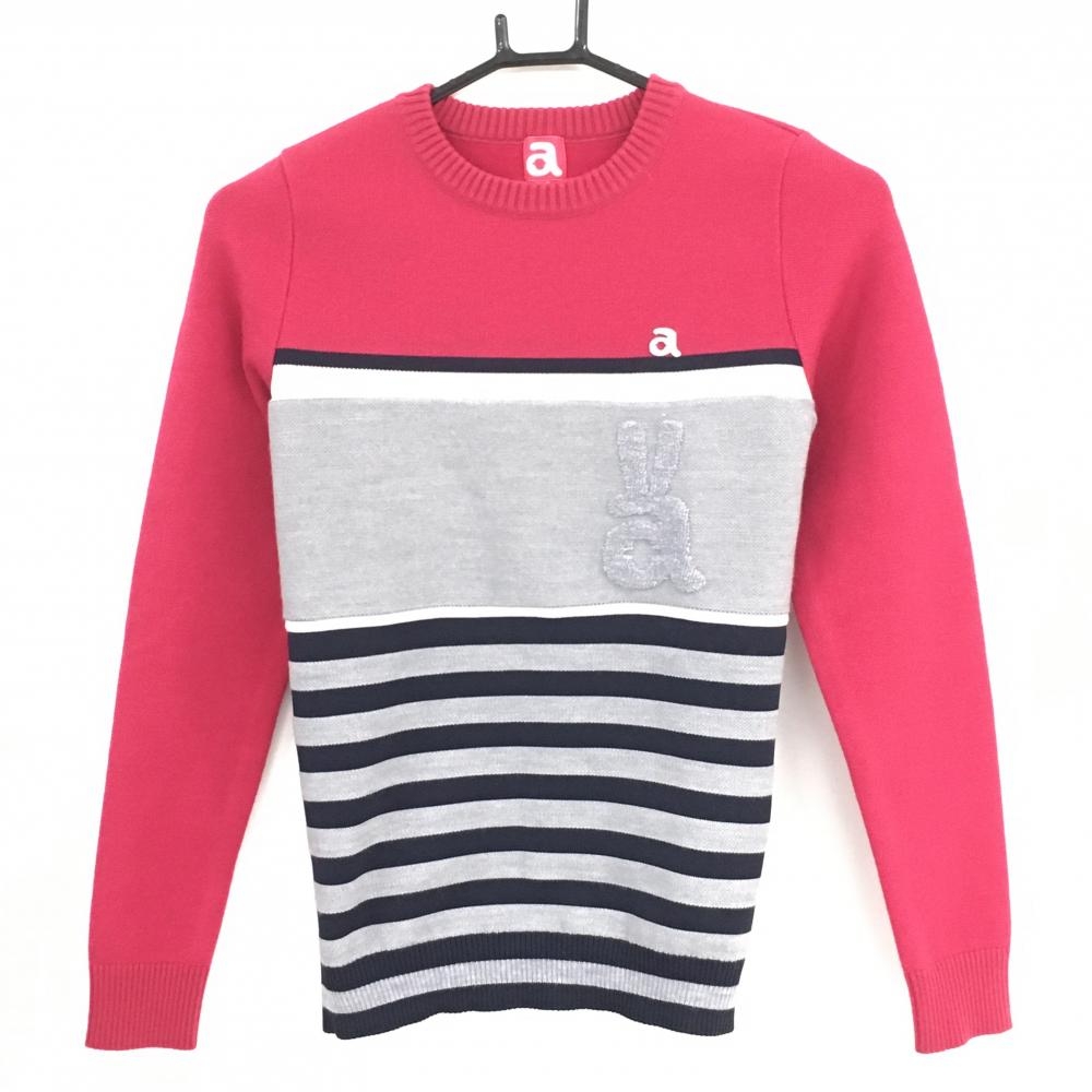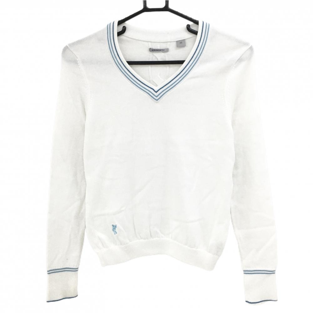 【美品】ジュンアンドロペ セーター 白×黒 ボーダー 胸元ワッペン ニット レディース M ゴルフウェア JUN&ROPE