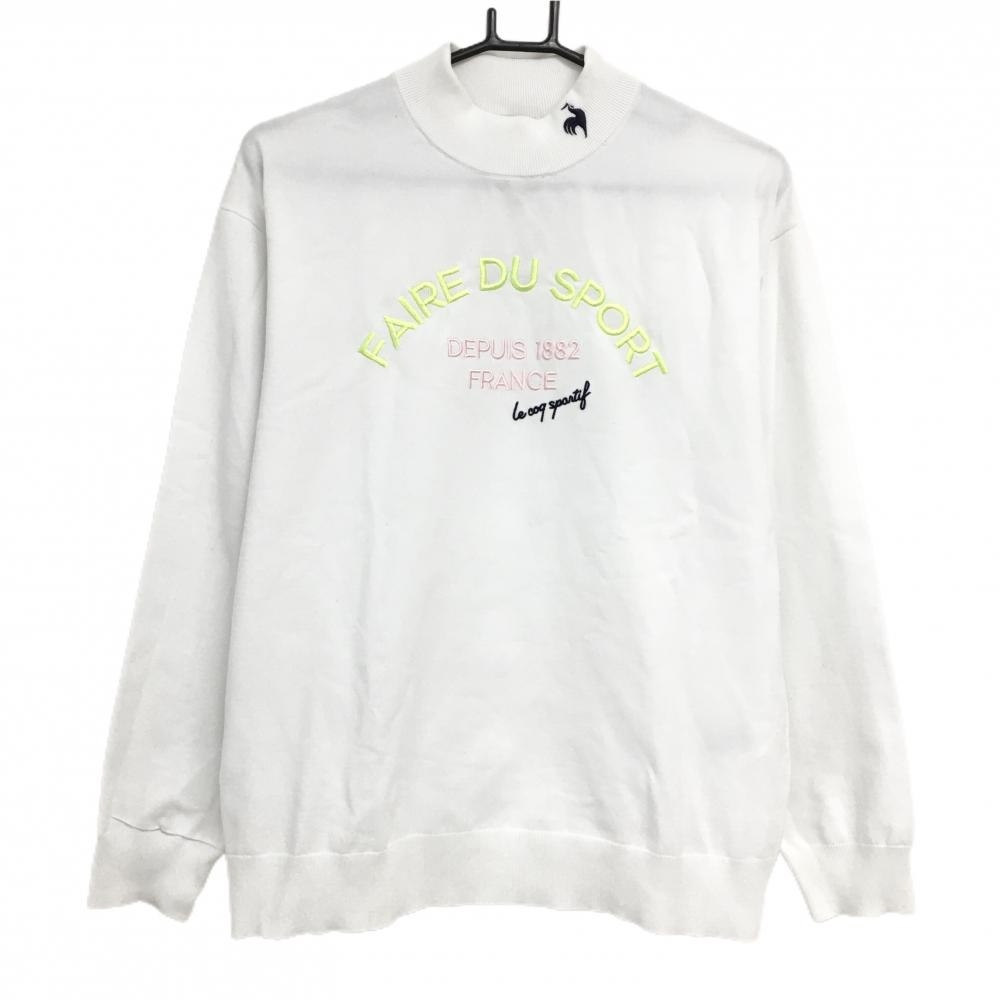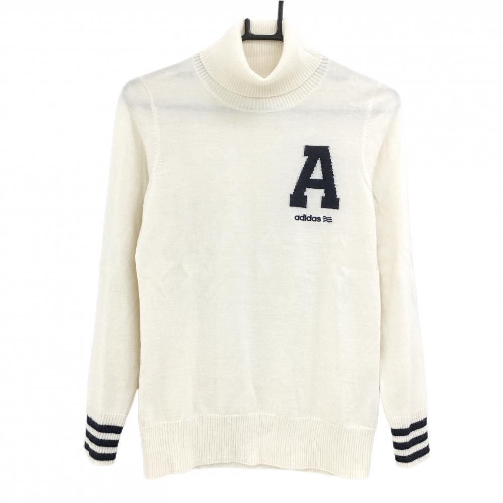 ルコック ニットパーカー アイボリー×ネイビー 袖口ライン ウール混 セーター レディース M ゴルフウェア le coq sportif