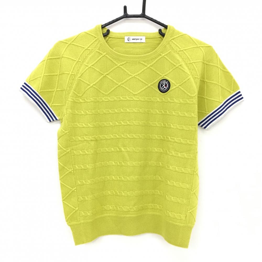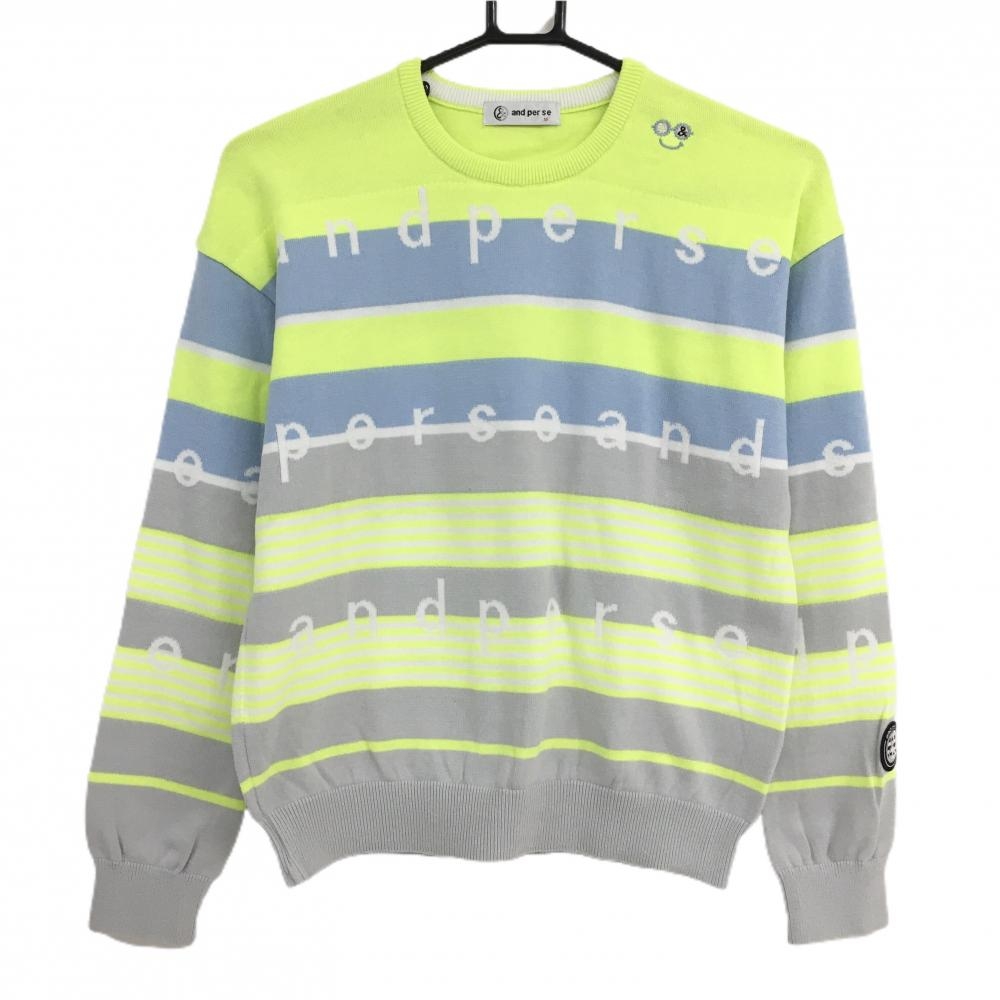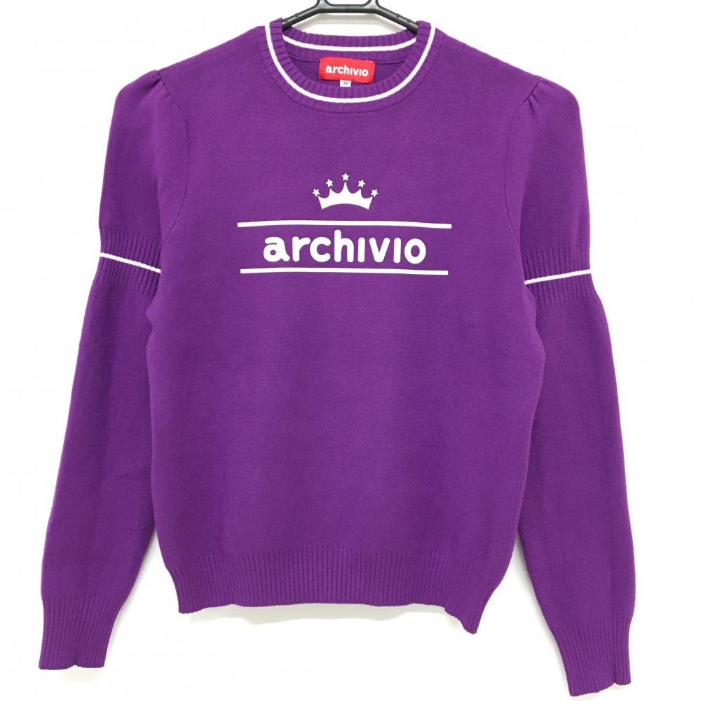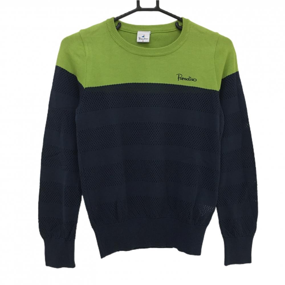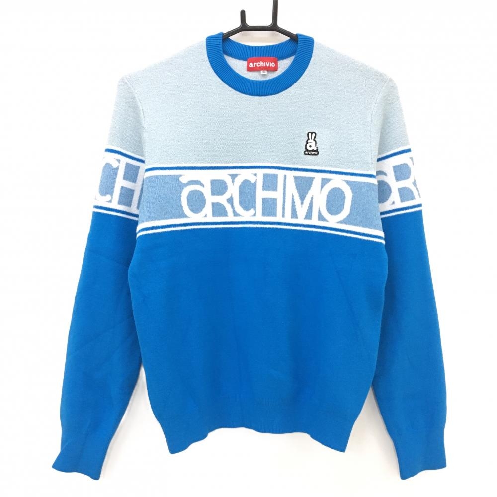 【美品】アルチビオ ニットパーカー ライトブルー×イエロー フロントロゴ セーター レディース 36(S) ゴルフウェア archivio