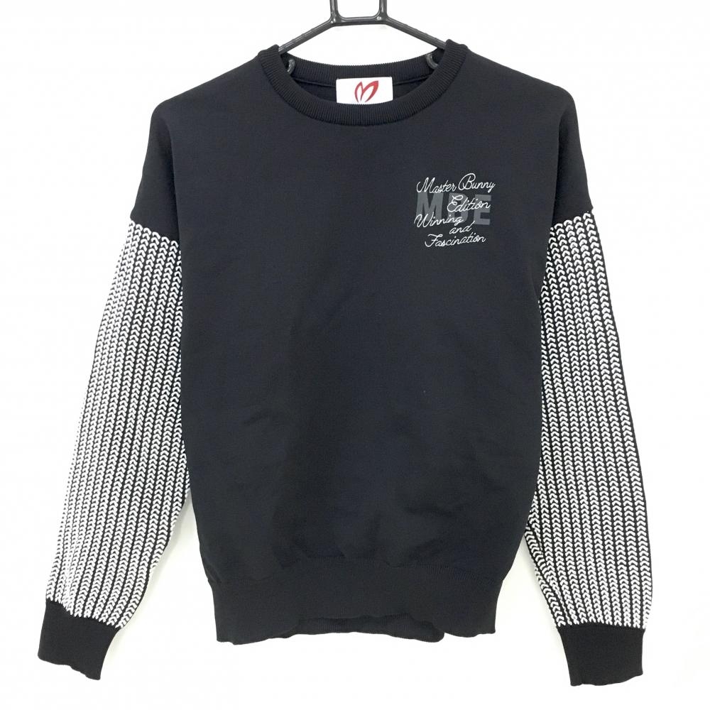 【超美品】マスターバニー ジップニットパーカー 黒×白 背面ロゴ 後裾プリーツ レディース 0(S) ゴルフウェア MASTER BUNNY EDITION