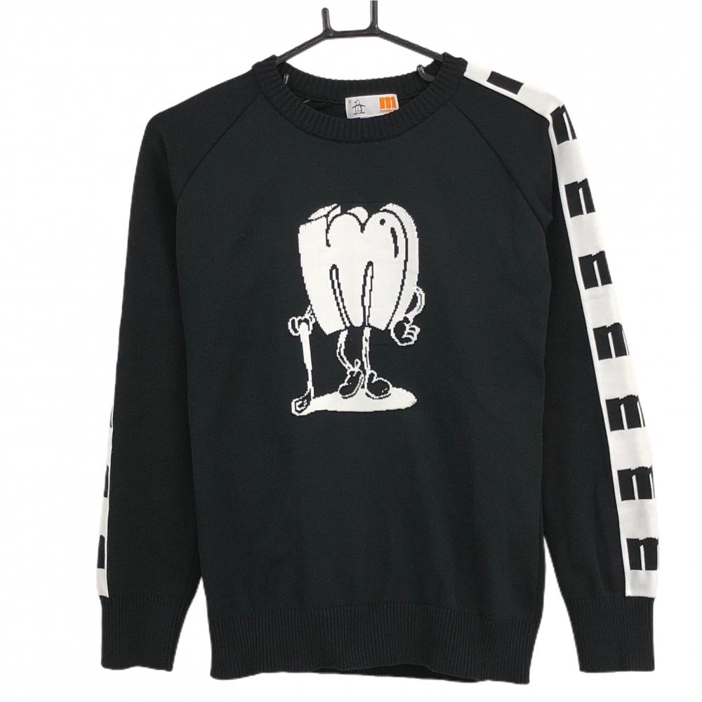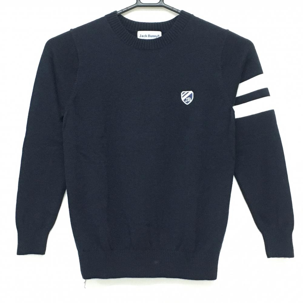 【美品】ジャックバニー ニットパーカー 黒×白 袖ロゴ 裾ドローコード セーター レディース 1(M) ゴルフウェア 2024年モデル Jack Bunny