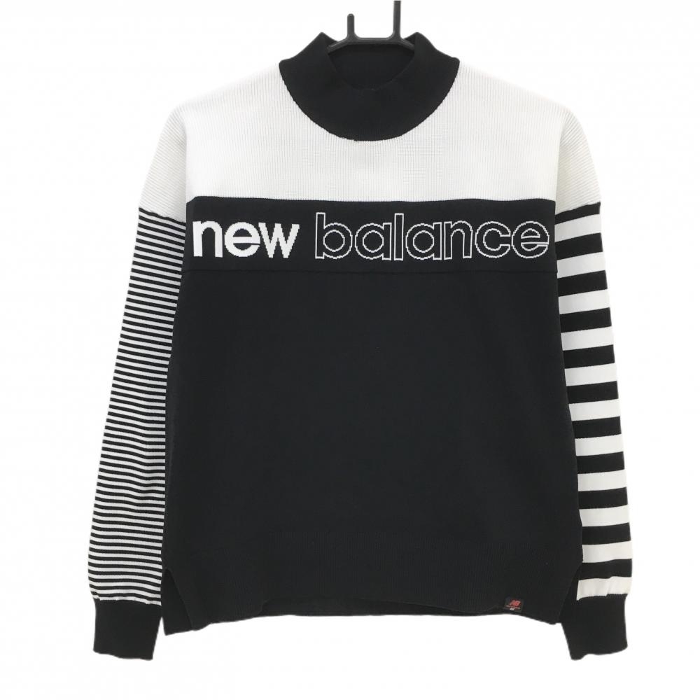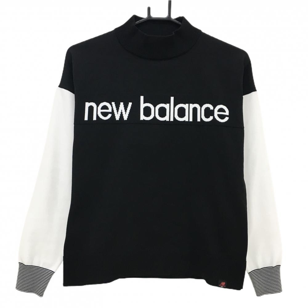 【美品】ニューバランスゴルフ ジップパーカー 黒×白 後裾斜めライン ブルゾン レディース 0(S) ゴルフウェア New Balance