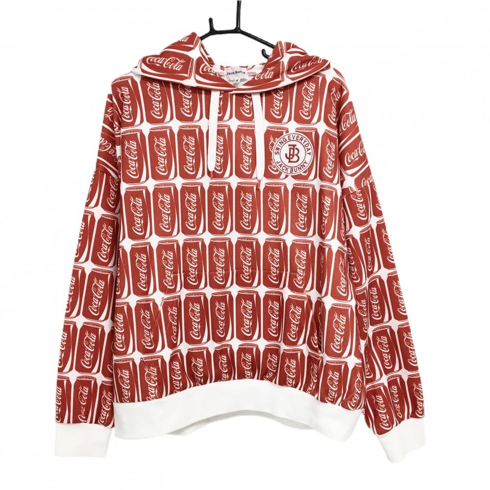 【超美品】ジャックバニー×コカ・カーラ パーカー レッド×白 総柄 トレーナー メンズ 5(L) ゴルフウェア Jack Bunny