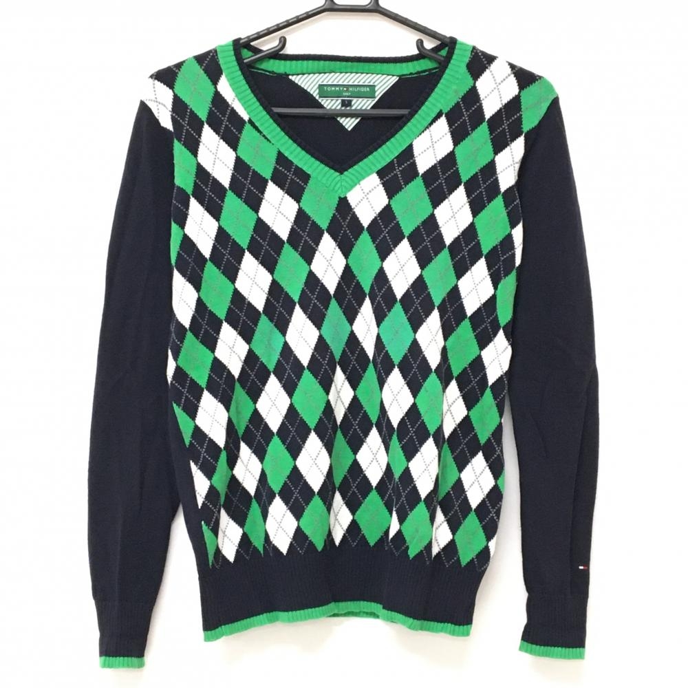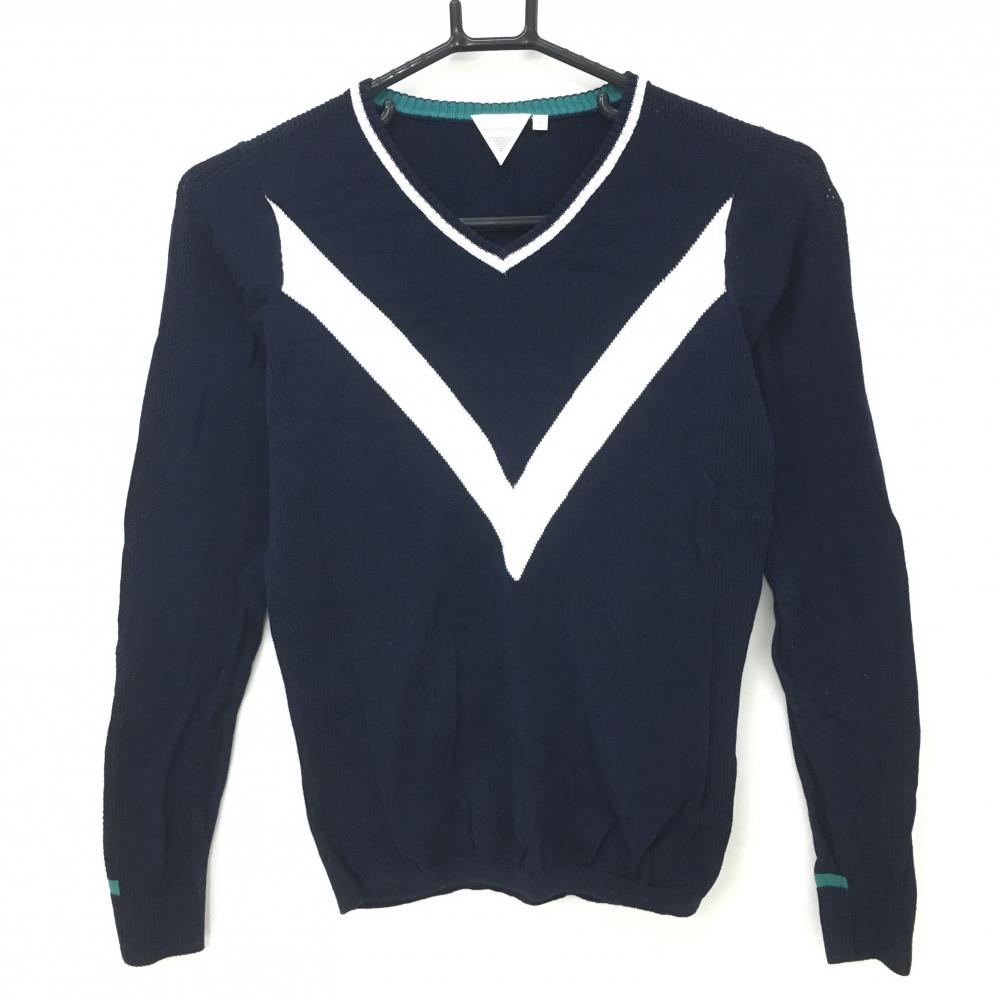 キャロウェイ ニットジップパーカー ネイビー×白×グリーン ボーダー ウール混 レディース L ゴルフウェア Callaway