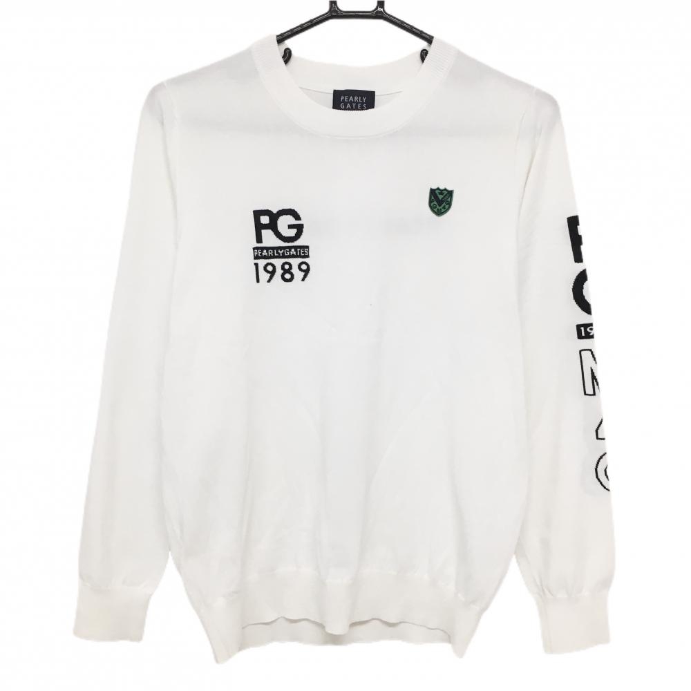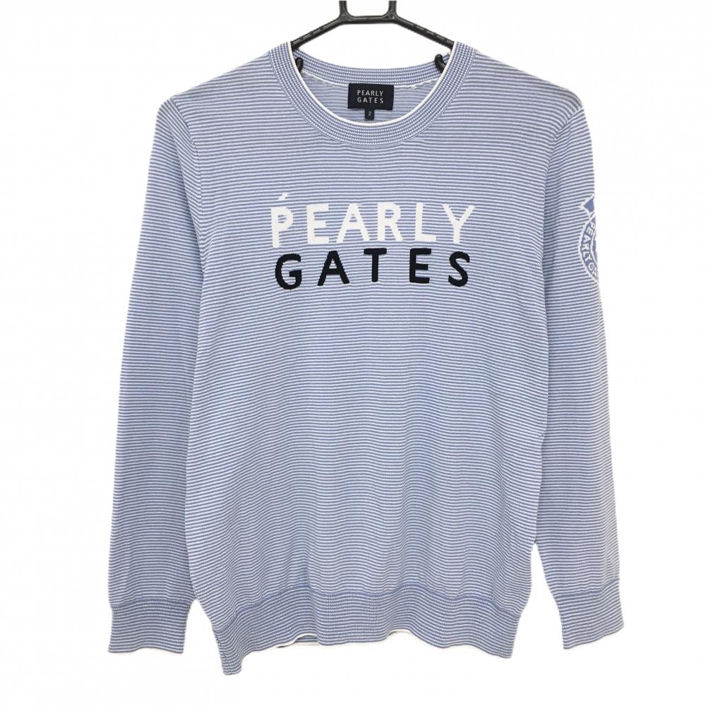 【美品】PGGパーリーゲイツ パーカー 白×黒 ボーダー フロントロゴ レディース 1(M) ゴルフウェア PEARLY GATES
