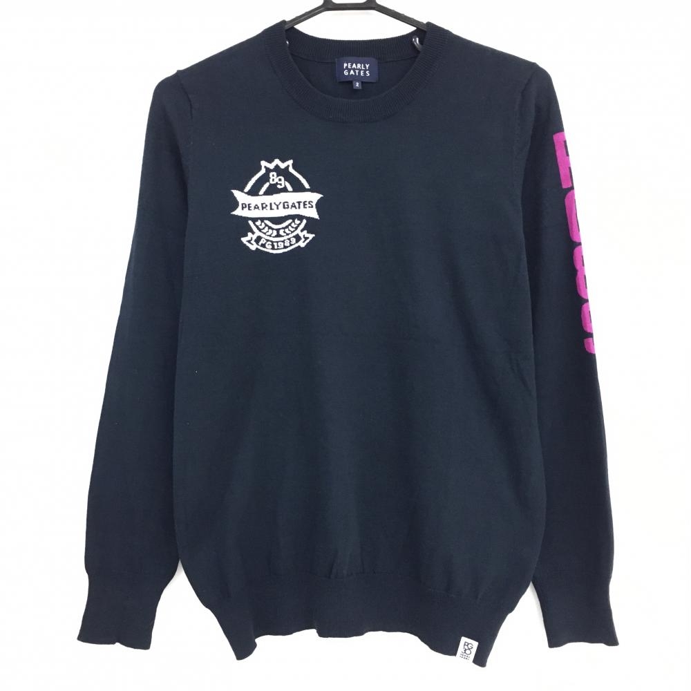【超美品】パーリーゲイツ パーカー 黒 ダンボールニット レディース 1(M) ゴルフウェア 2024年モデル PEARLY GATES