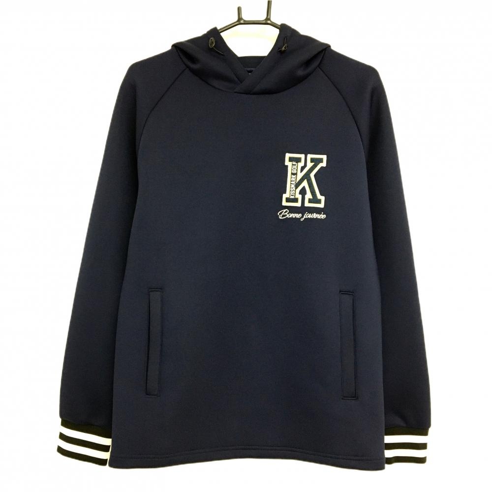 ミズノゴルフ 2WAYパーカー ネイビー系 立体ロゴ 袖着脱可 トレーナー メンズ XL ゴルフウェア MIZUNO