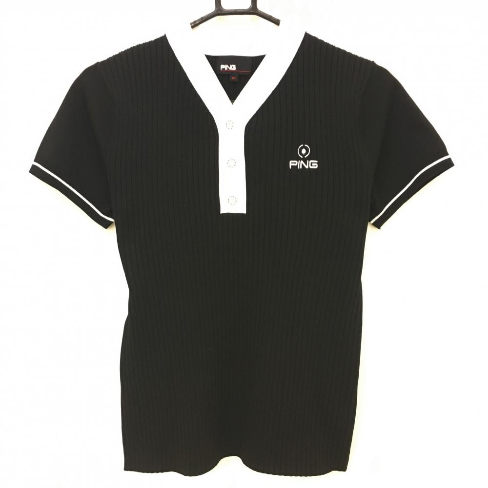 【超美品】ピン 半袖パーカー 黒×ゴールド ハイネック ネックラメ レディース S ゴルフウェア 2023年モデル PING