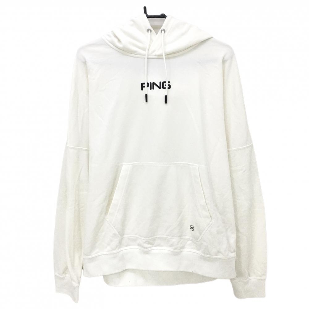 ピン パーカー 白×ネイビー フロントロゴプリント レディース M ゴルフウェア 2023年モデル PING