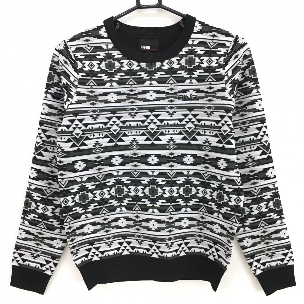 ピン パーカー 黒×シルバー フロントロゴプリント 裾ゴム レディース S ゴルフウェア PING