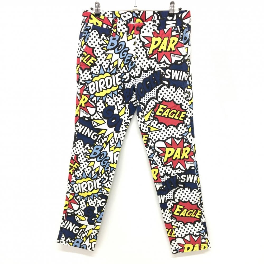 ジャックバニー パンツ オフホワイト ロゴ黒 後ポケット刺しゅう メンズ 7(2XL) ゴルフウェア Jack Bunny