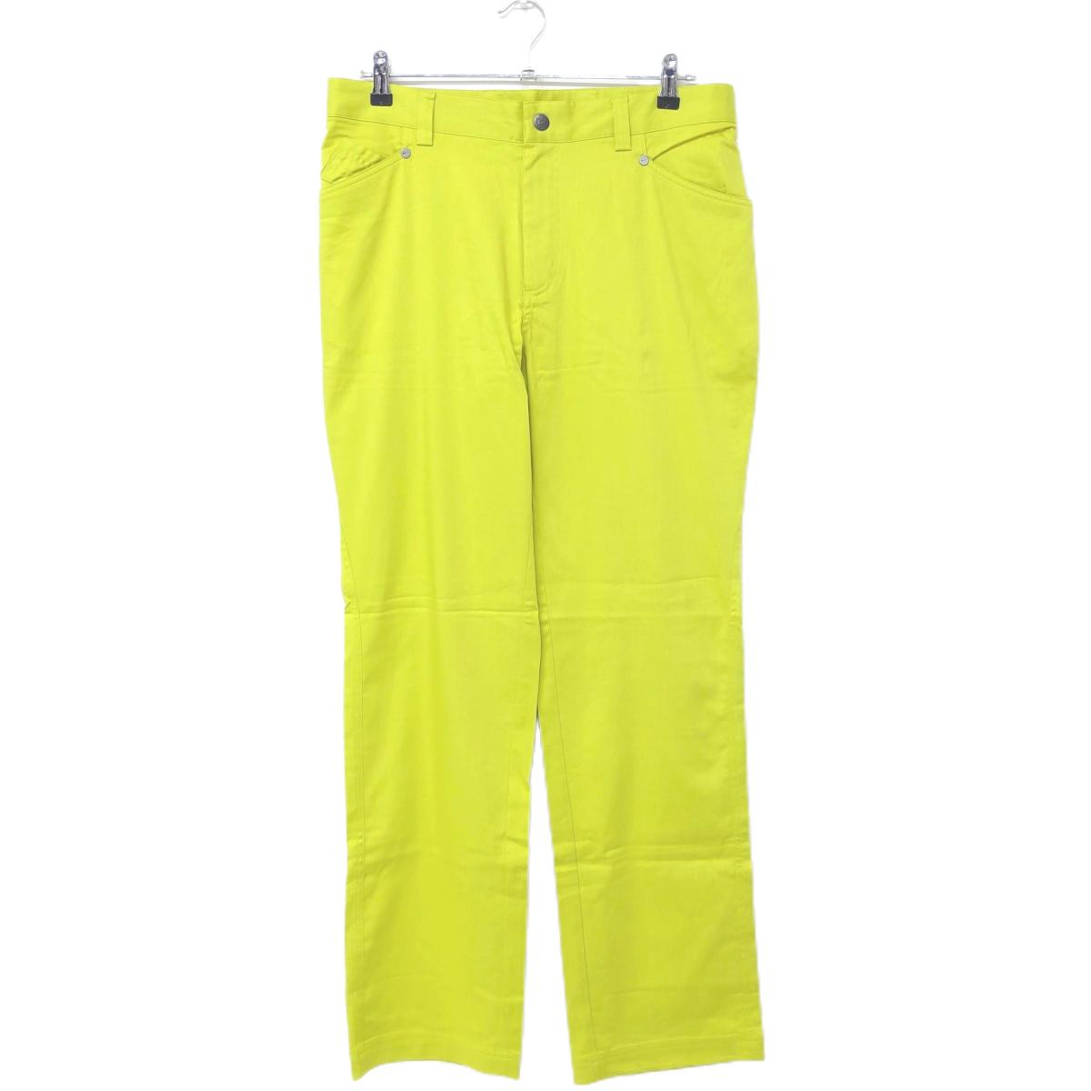 【美品】ルコックゴルフ パンツ イエロー 地模様 ジップポケット ストレッチ メンズ 105 ゴルフウェア 大きいサイズ le coq sportif