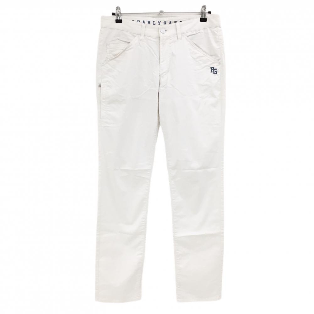【美品】パーリーゲイツ パンツ 白×ネイビー ロゴ総柄 内側30周年 ストレッチ レディース 2(L) ゴルフウェア PEARLY GATES