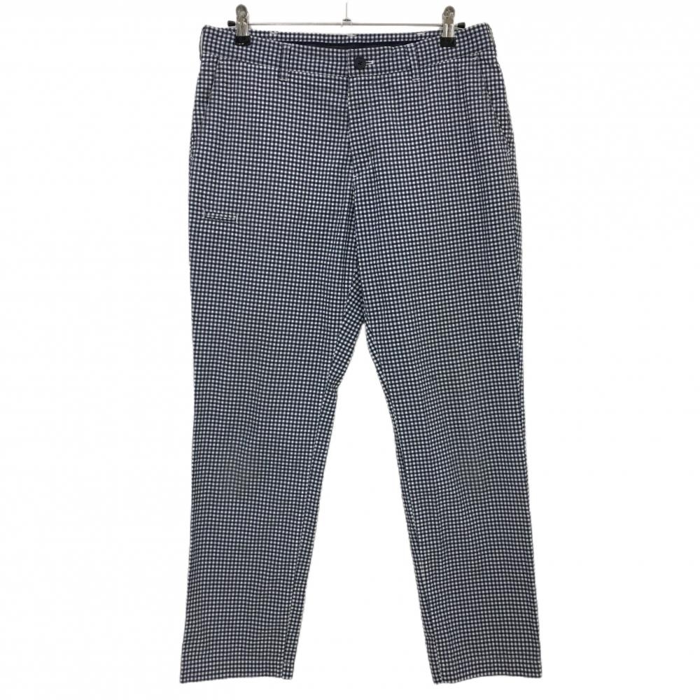 【美品】ルコックゴルフ パンツ ネイビー×白 総柄 ストレッチ 複数ポケット メンズ 79 ゴルフウェア le coq sportif